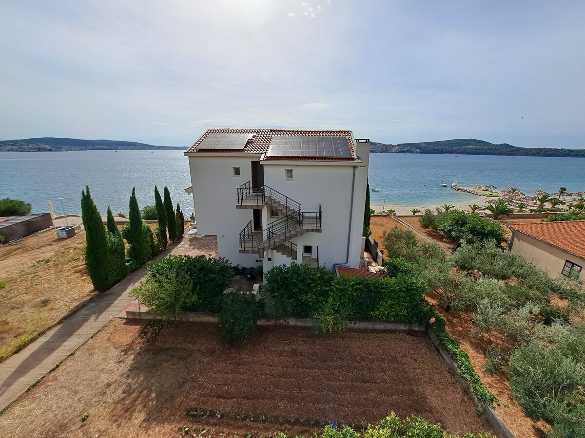 Բնակարանների ծովը գտնվում է կատարյալ վայրում ՝ Տրոգիրի մոտակայքում, անմիջապես լողափին, որտեղից բացվում է լավագույն տեսարանը գեղեցիկ Ադրիատիկ ծովի և կղզիների վրա: Դա խաղաղ և հանգիստ տարածք է ։ Տան դիմաց 3 կիլոմետր երկարությամբ ծովափնյա զբոսանք է, որը պարունակում է բարյացակամ հյուրընկալողներ և առողջ սնունդ միջերկրածովյան փոքր ռեստորաններում: Երկու բնակարաններն էլ հիանալի տեղադրություն ունեն և շատ հեշտ մուտք ունեն դեպի Տրոգիր (գեղեցիկ հին քաղաք ՝ ողջամիտ գներով ռեստորանների մեծ ընտրանիով) և Տրոհում նավակային տաքսիների միջոցով: