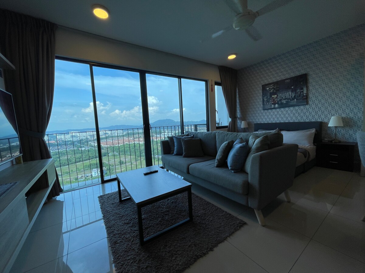 Այս 1 Br բնակարանից բացվում է հիասքանչ տեսարան դեպի Կլայի տեսարան ։ Այն ունի 3 տեղանոց բազմոց հյուրասենյակ, ճաշասեղան, խոհանոց, գրասեղան և մեծ պատշգամբ ՝ KL Tower - ի և Petronas Twin Towers - ի դիմաց ։ Այն ունի 55 դյույմանոց հեռուստացույց, Hi - Speed WI - FI և Queen չափի մահճակալ, որը կարող է հարմարավետորեն տեղավորել ձեզ ։ *Այս երկակի բանալիով բնակարանի մյուս հարկաբաժինը կոմպակտ ստուդիա է ՝ Queen չափի մահճակալով, մառանով, լվացքասենյակով և լոգասենյակով ։ Այն կարող է տեղավորվել ընկերների մեջ, որոնք ձեզ հետ ճանապարհորդում են գաղտնիությամբ ։ Բարի գալուստ լրացուցիչ մանրամասներ խնդրելու ։