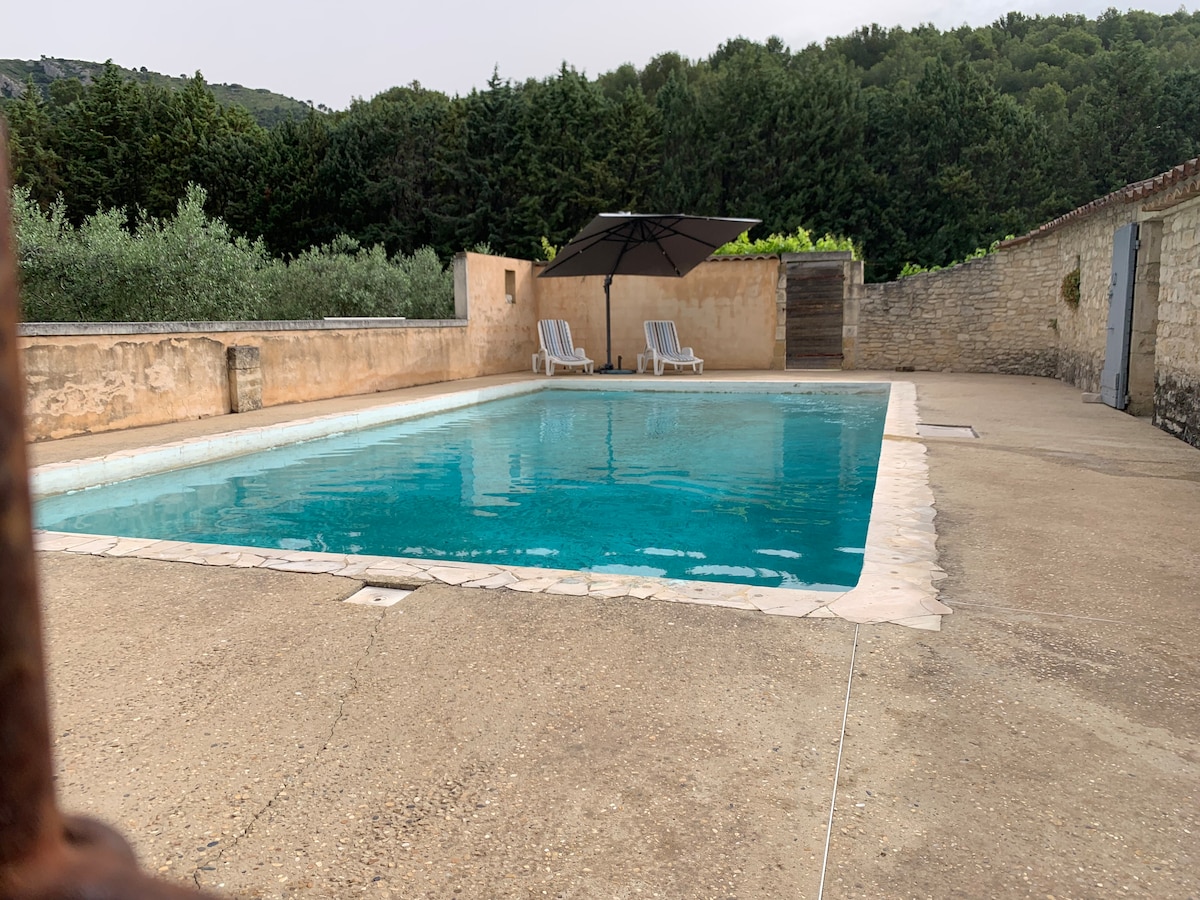 Mas Provençal XVIIe climatisé idéalement situé entre Alpilles et Luberon. Piscine sel sans chimie clôturée + alarme.Cour intérieure; volley ball,terrain pétanque,vélos,ping pong, jeux d'enfants. 5 chambres,4 salles d'eau,3 wc. Visites villages,caves. Escalade,massage,yoga,randonnées. Je peux vous conseiller pour vos circuits et visites. Le Mas n’est pas fait pour recevoir des bringueurs,fêtes interdites, voisinage proche. Espaces de travail wifi.