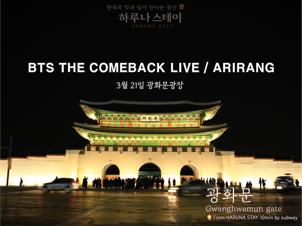 Ամբողջ տարածքը 1 - ին և 2 - րդ հարկերում, ազատ է 2 -8 հոգու համար, ննջասենյակ 2 (2 երկտեղանի մահճակալ), ընդարձակ հյուրասենյակ 2 (2 երկտեղանի թախտ), զուգարան 2, խոհանոց 1 (խոհանոցային պարագաներով), մեծ ընկույզի ճաշասեղան 12 հոգու համար (4 մ), սեղանի խաղ, Nintendo Switch խաղ Խոհանոց - Բրնձի կաթսա, միկրոալիքային վառարան, ինդուկցիա, սառույցի ջրի մաքրող միջոց, սուրճի մեքենա (էսպրեսո մեքենա), խոհանոցային պարագաներ և համեմունքներ, դանակ - պատառաքաղ, գինու բաժակներ և լիովին հագեցած սառնարանով Մնալու ամենագեղեցիկ վայրը ՝ Սեուլի կենտրոնում գտնվող պալատական ֆոնին ։ Դուք կարող եք վայելել չբացահայտված Չանգդեոկգունգ պալատի հովանավորվող գաղտնի պարտեզի տարածքը նայող բուժում, և այն մոտ է և ՛ մետրոյի կայարանին, և ՛ հասարակական տրանսպորտին, ուստի ճանապարհորդելու համար շատ հարմարություններ կան: Դուք ապրում եք փողոցում 10 րոպեից, այնպես որ կարող եք պատասխանել ցանկացած պահի ։ ** Առանձին կայանատեղ չկա, բայց հանրային կայանատեղին գտնվում է 5 րոպե հեռավորության վրա ։
