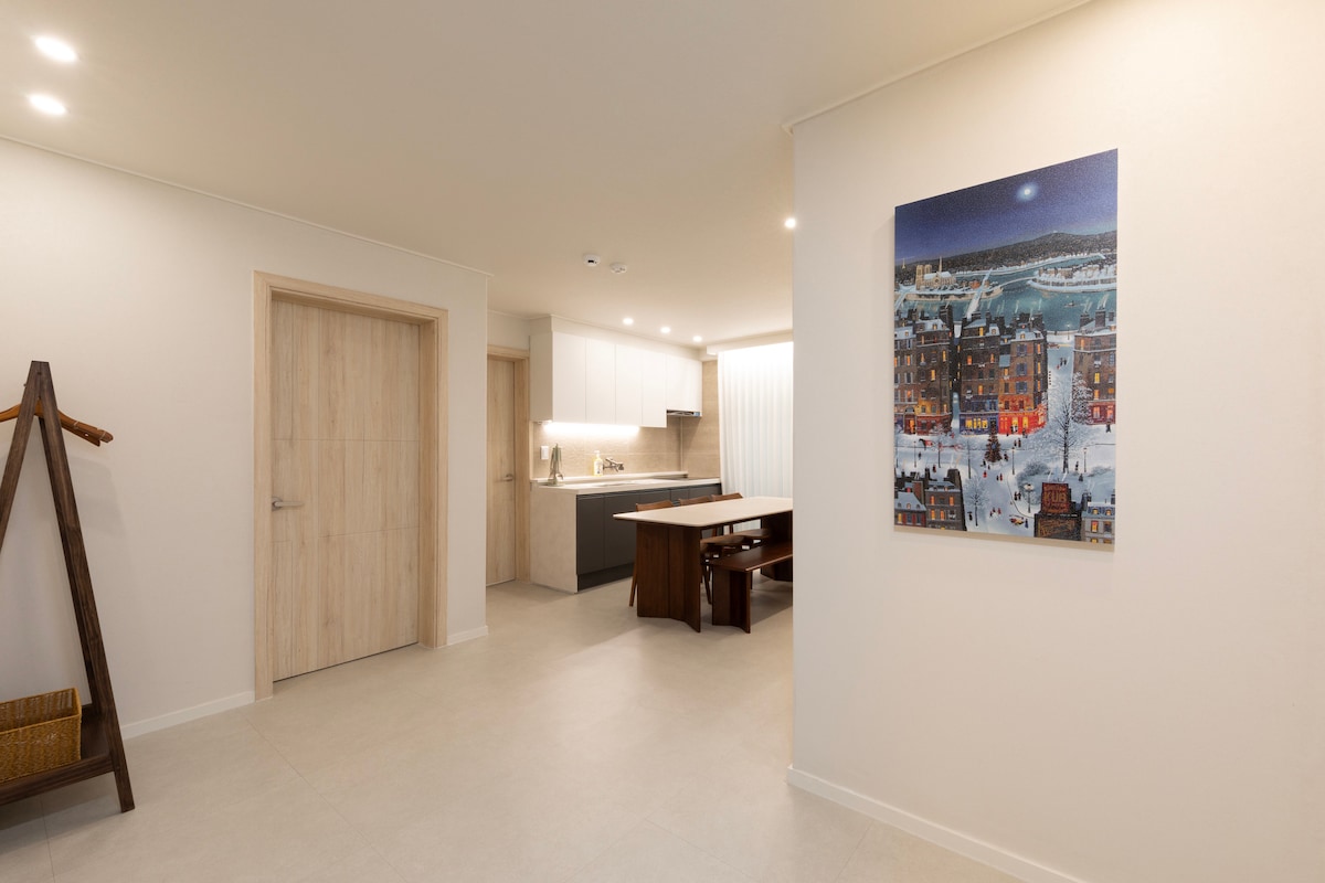 🏡 Fully Renovated (Aug 2025) Entire home renovated — interiors, furniture, bedding, appliances, and bathroom. Fresh and clean like new. 📍 Prime Seongsu Location Line 2 within 9 min walk / 3 min by car — Seongsu, Ttukseom, Seoul Forest. Near Yeonmujang-gil. Quiet yet central. 🛌 Perfect Sleep 3 queen beds with 30cm premium hybrid mattresses for firm support and goose-down bedding for comfort. 🛁 Newly Built Bathroom Hotel-style, rebuilt with large porcelain tiles.