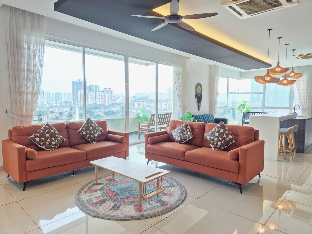 Sit back and relax in this calm, stylish space. Why Panoramic 2BR suite at Lucentia: - Best views of KL - Beautifully decorated with a fun spirit - Centrally located & attached to public transit hub - Fast wifi - 2 TVs with Netflix & others - 2 gorgeous pools - Family friendly with baby crib & highchair - Gym, pool table, BBQ pits, piano - Garage parking - Recommended to Sleeps 4 people max 6 - LaLaPort Shopping Mall & the WOW entertainment street are attached - Grocery, drug store & Cinema etc