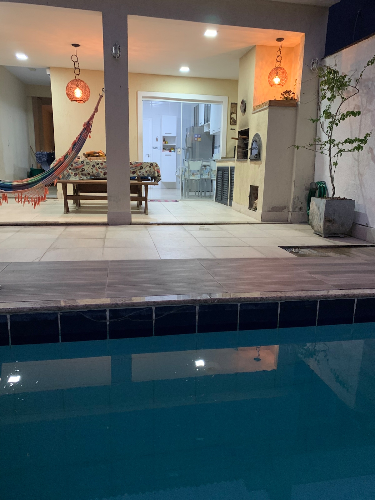 Casa agradável com piscina e churrasqueira.