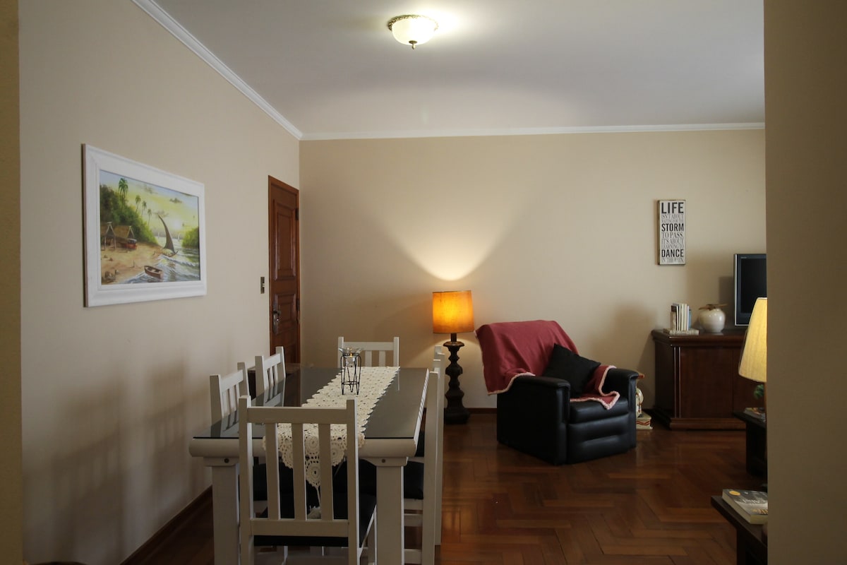 Հարմարավետ և հանգիստ Սերրա Նեգրայի կենտրոնում ։ Բնակարան 115մ2 մակերեսով, հմայիչ, առջևի, ազատ տեսարանով, Սերրա Նեգրայի/SP - ի կենտրոնում: Բնակարանն ունի լավ օդափոխվող, լայն, հստակ, խաղաղ և հարմարավետ: Բնակարան, որը գտնվում է 5 - րդ հարկում, ունի վերելակ, սեյֆ, լուսավոր հանգիստ փողոցում ՝ կենտրոնում, գլխավոր փողոցից 400 մետր հեռավորության վրա ։ Գերարագ Wi - Fi ամբողջ բն. Անվճար հեռախոսազանգեր ամբողջ Բրազիլիայում Հեռուստացույց 50" Full HD Նվազագույնը 2 գիշեր ։ Բարի գալուստ