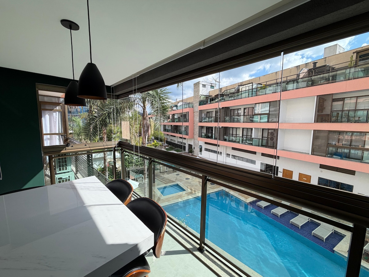 Apartamento de excelente localização fazendo tudo a pé sem necessidade de carro. Imóvel todo equipado com eletrodomésticos, ar condicionado em todos os cômodos (menos o externo), possui 2 suítes, Uma com Cama Casal Queen, e a outra com Sofá Cama de excelente qualidade. Provedor de Internet por fibra ótica de 500Mb. O Condomínio possui também várias áreas de lazer, duas Piscina, Academia, Jacuzzi, Sauna, Brinquedoteca, salão de Jogos.. Sejam muito bem-vindos! É um Prazer recebê-los!