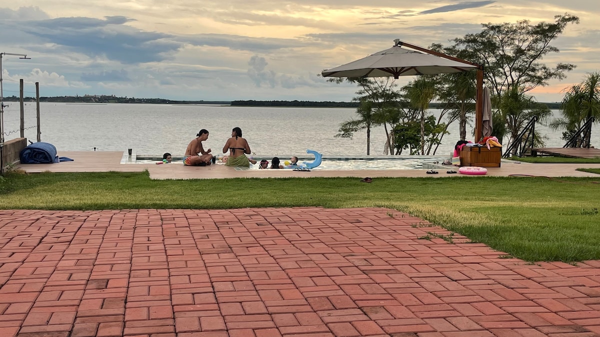 Localização privilegiada, ás margens da Represa Capivara com vista do encontro do rio Tibagi e Paranapanema. Luxuosa casa com maravilhoso jardim com jasmim rosa, piscina, 4 suítes e com capacidade p/ 19 pessoas. Nossos hóspedes poderão usufruir de todos espaços em comum do condomínio: lago, marina, mercearia, gourmeteria, academia, quadras, entre outros. Acesso asfaltado e posto de combustível no local. Portaria 24/h com ronda náutica e patrulha. Pista de pouso e heliponto