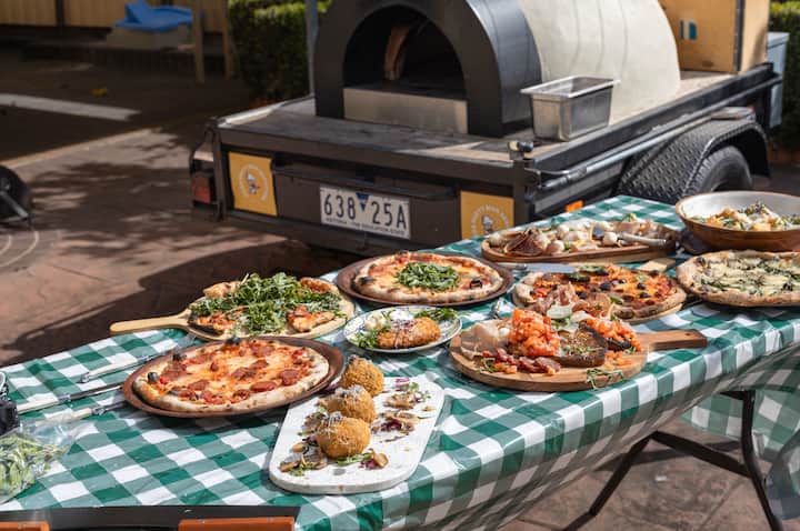Անուշաբույր կրակով պիցցա և Անտիպաստո, որը կատարյալ է երեկույթների, հարսանիքների և կորպորատիվ միջոցառումների համար ։ Թարմ, ձեռակերտ պիցցաներ ՝ զվարճալի մթնոլորտով ։