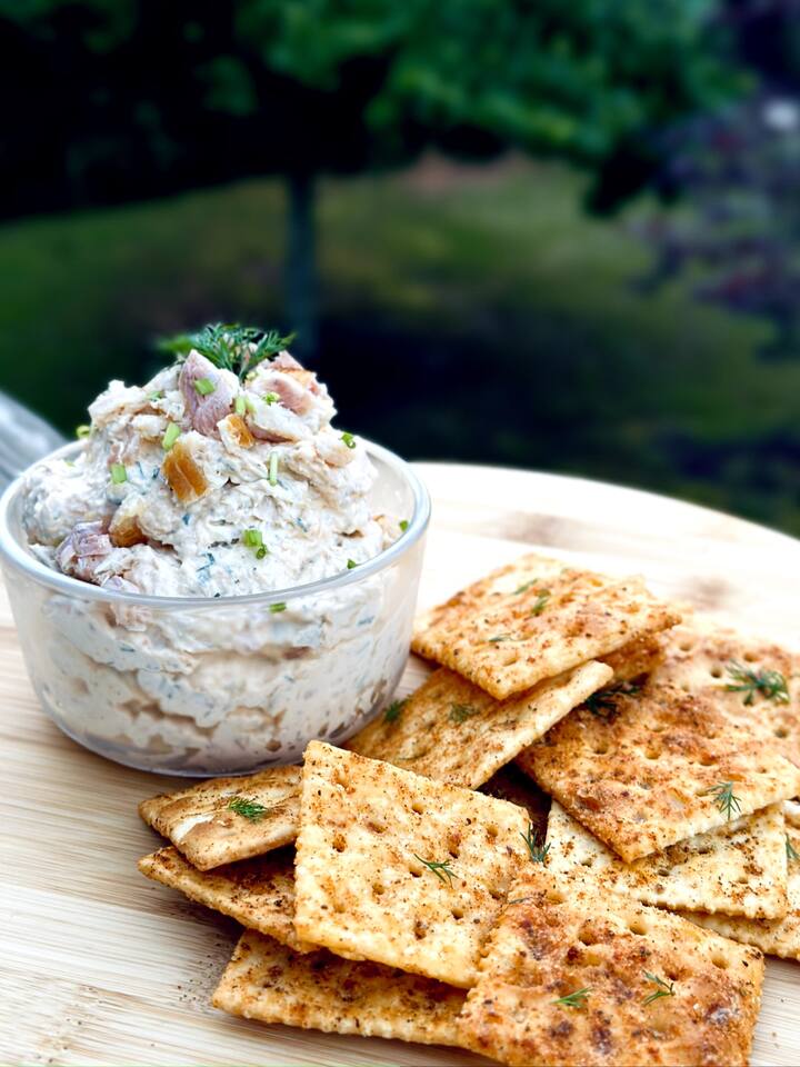 Կրեմով ապխտած իշխանի ընկղմում ՝ պատրաստված թարմ սամիթով և կիտրոնով, մատուցվում է հին դափնու աղիններով ։
