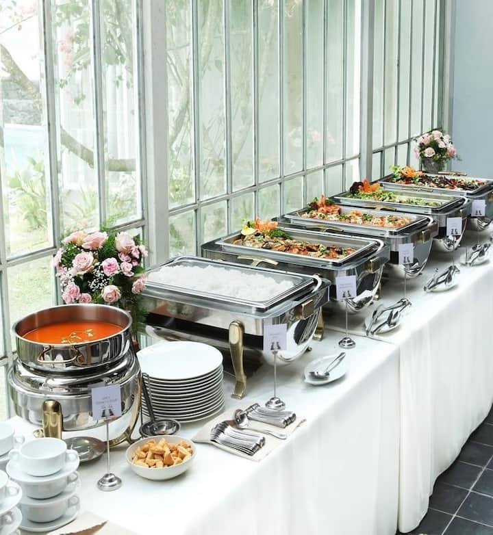 Հանրային սննդի ոճի այս տարբերակը ներառում է նախուտեստ, 2 կողմ և մուտք ։ Աշխատակազմը մնում է միջոցառման ամբողջ ընթացքում և տրամադրում է հարթ սպասք, կարգավորում, մաքրում և օգնություն ։ Սա իդեալական տարբերակ է կորպորատիվ լանչերի և բացօթյա միջոցառումների համար ։