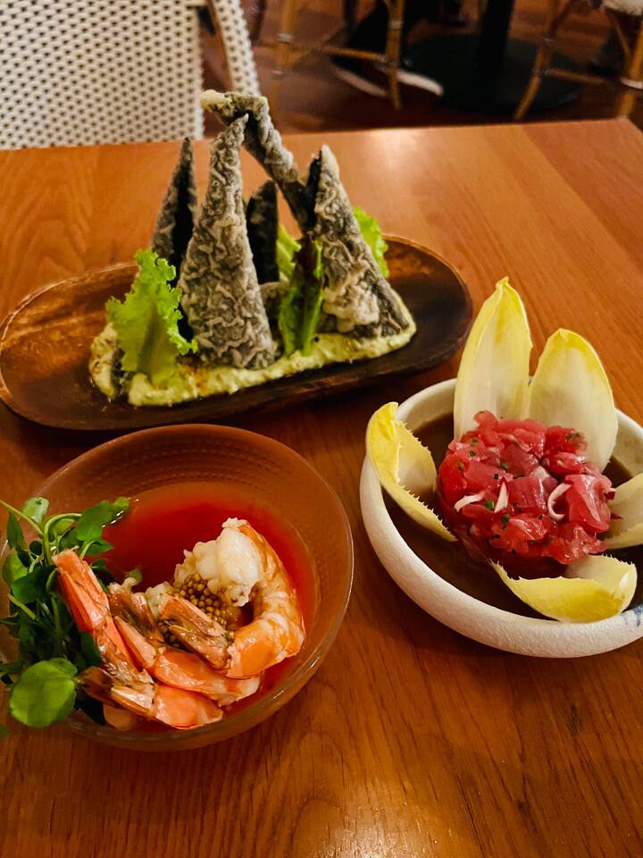 Ապակու պանրի և թահինի սոուս + հարած ֆետա և խոտաբույսերով լաբնե, կինուա թաբուլի, համեմված գառան կոֆտա, հարիսա հավի շիշ, կոճապղպեղ և չղոտ ֆալաֆել, սեզոնային ձիթապտղի և թթու ընտրություն, մինի խորոված պիտա գրպաններ, սումակ պիտա չիպսեր: