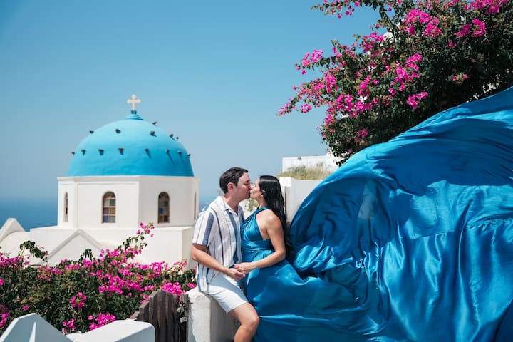 Լուսանկարվեք փռվող զգեստով Սանտորինիում՝ տեղացի պրոֆեսիոնալ լուսանկարիչի հետ։ Փորձառությունը սկսվում է մեր ֆիզիկական խանութում, որտեղ կարող եք ընտրել ձեր սիրած զգեստը 120 եզակի «թռչող» զգեստներից։ Հետևում է պրոֆեսիոնալ նկարահանում ընտրված վայրերում՝ կեցվածքի ցուցումներով։ 2 օրվա ընթացքում ստացեք բոլոր չխմբագրված լուսանկարները և խմբագրման համար ընտրեք ձեր սիրած 25-ը։ Օգնականը և զգեստը ներառված են։ Դուք կվայելեք և կստանաք տեսանյութ սոցիալական ցանցերի համար։