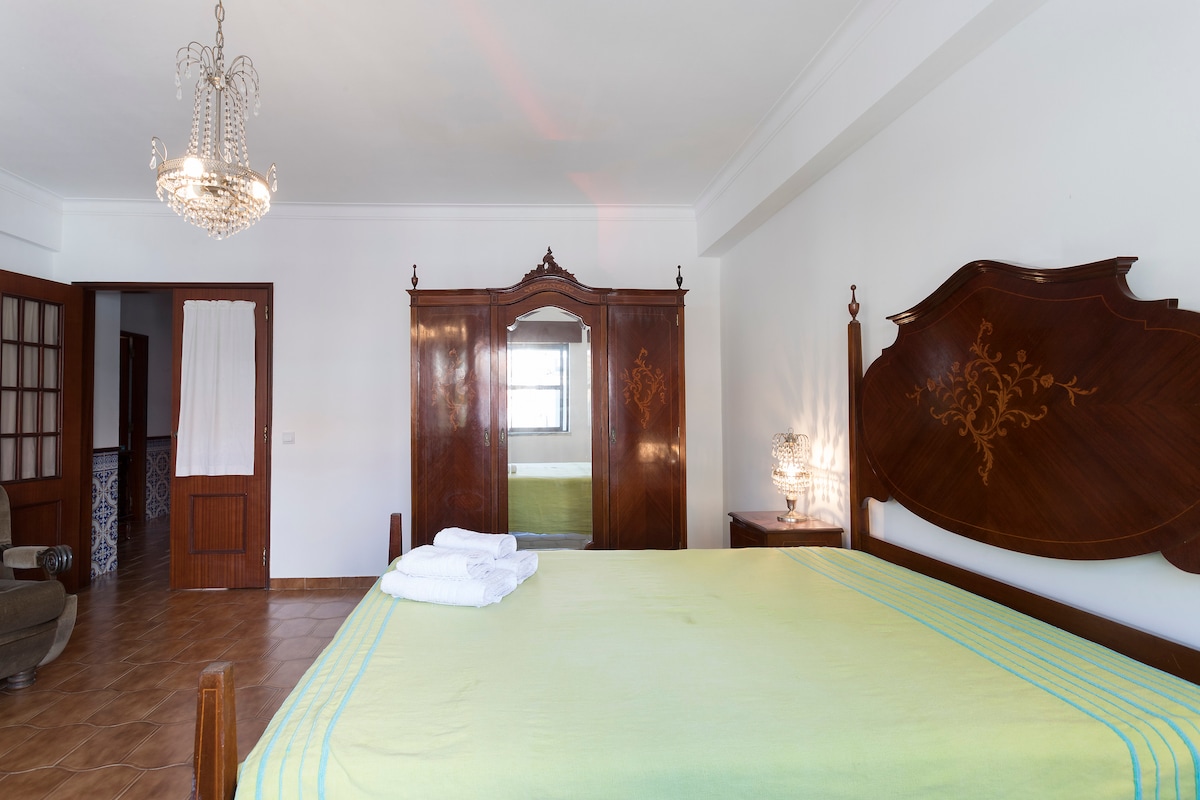 The lovely and modern furnished apartment (110sqm, own entreance) is located in the historic old town of Palmela, in the center of viticulture 28 km south of Lisbon. Experience medieval atmosphere just below the Moorish "Castelo" and the historic city park. House in house. Living room with fireplace, 2 bedrooms, 2 bathrooms, kitchen. Heating and air conditioning. Last renovation 2024. Private courtyard. Children up to 10 years free of charge. Atlantic beaches only 15 minutes away. Bem vindo.