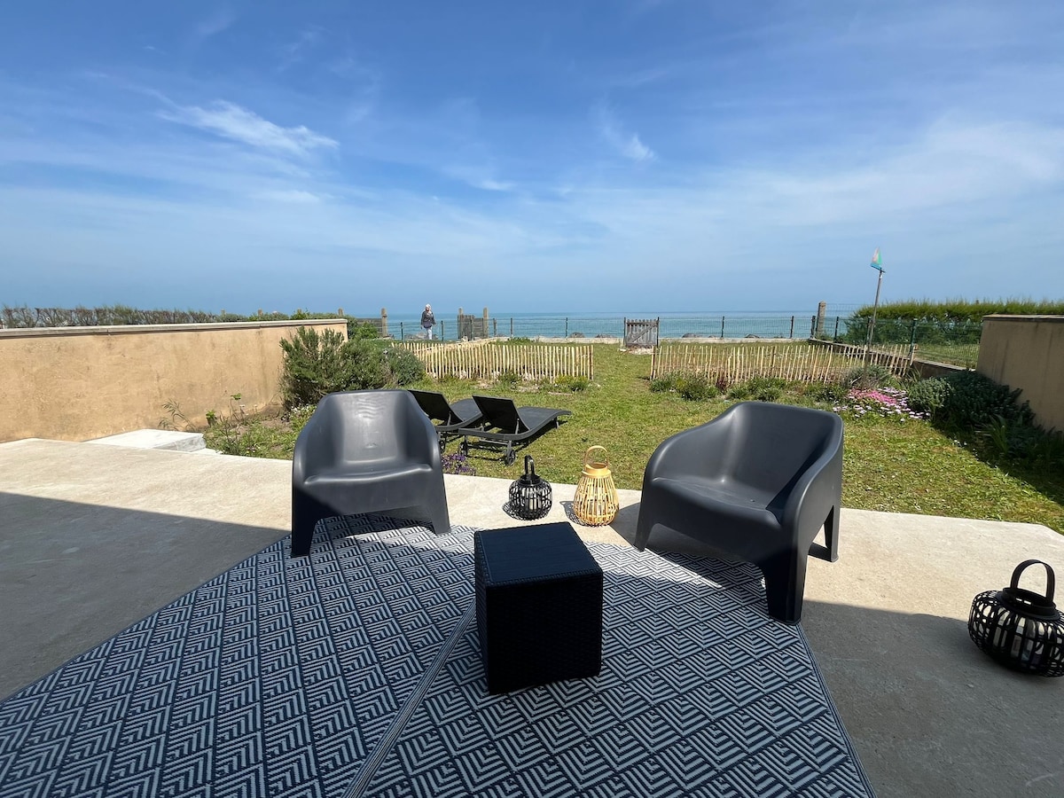 Վարձակալություն նոր շինարարության տան/բնակարանի ծովի տեսարանով: գտնվում է գեղեցիկ լողափից 100 մ հեռավորության վրա, Պոնտոնս դ'Արոմանչեսի տեսարանով, այս տունը ձեզ կառաջարկի նոր շինարարության հարմարավետություն: կազմված է երկու ննջասենյակների առաջին հարկում, ներառյալ մեկը լոգարանի WC - ի և ավազանի կահույքի հետ, լոգասենյակ զուգարանակոնքով և ավազանի կահույքով, վերևի զուգարան, լիովին կահավորված խոհանոց, հյուրասենյակ, հյուրասենյակ ՝ փոխարկելի բազմոցով, պատշգամբով և ծովի տեսարանով: