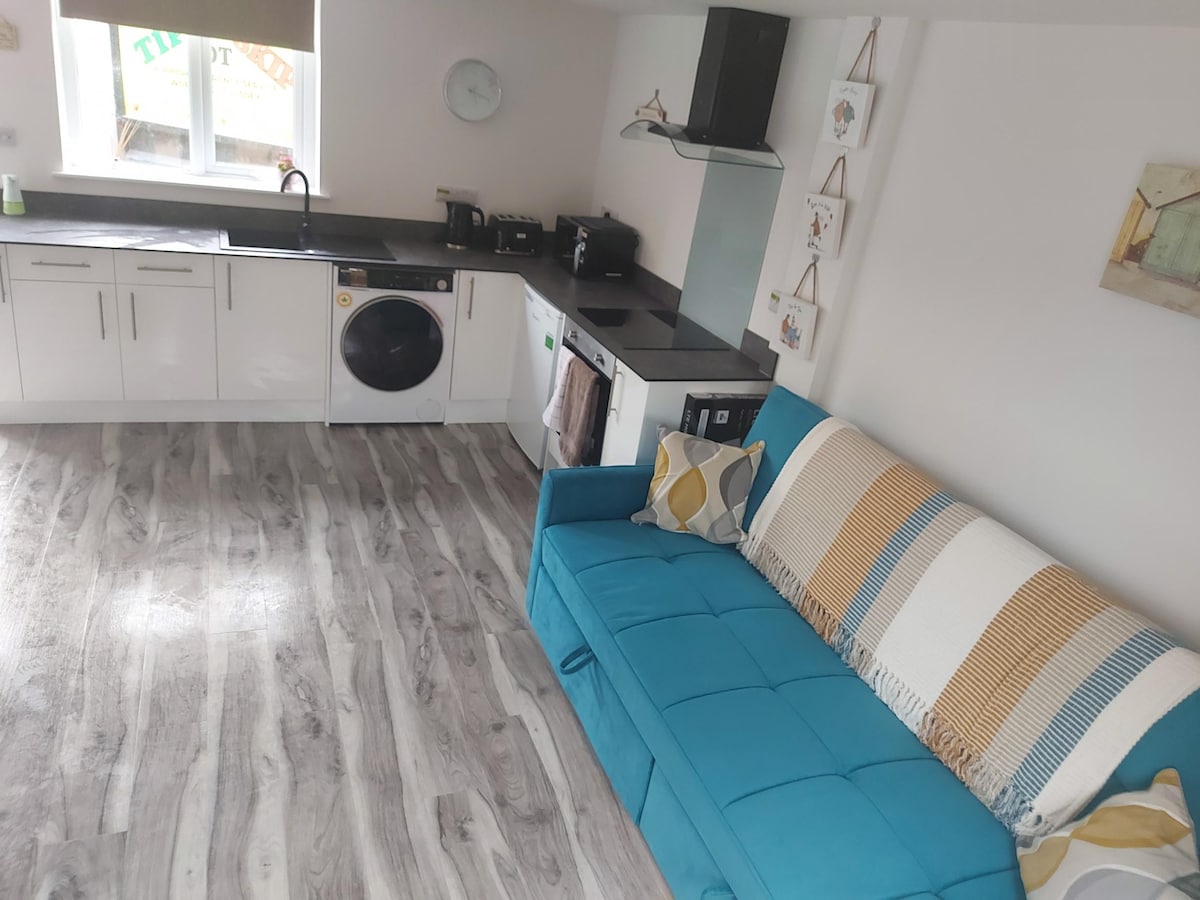 Lovely garden cabin, quiet location with outside space. Views looking over a beautiful park. Self check in, access via side of the house. Your own private garden area with table & chairs, fire pit & BBQ. Fully equipped kitchen includes oven, 4 ring hob, fridge & freezer, microwave, coffee machine. Double bedroom with en-suite bathroom. FREE on street parking. Short walk into town where there are lots of bars/restaurants. Great local pub 5 minutes walk with garden & plenty of outside seating.