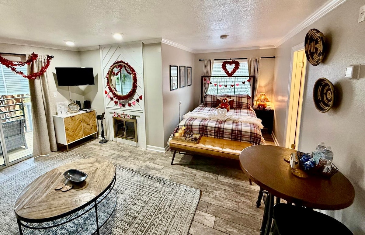 Escape to the Smokies in this beautiful, romantic studio condo 10 minutes from downtown Gatlinburg. Snuggle by the warm fireplace, sip coffee on your private balcony, and unwind in the queen bed or sleeper sofa. A charming kitchen makes simple meals easy. Enjoy peaceful moments together, then relax in the indoor and outdoor pools, indoor hot tub, or explore the clubhouse arcade. Perfect for anyone seeking a quiet mountain escape The views from around the community are tremendous!