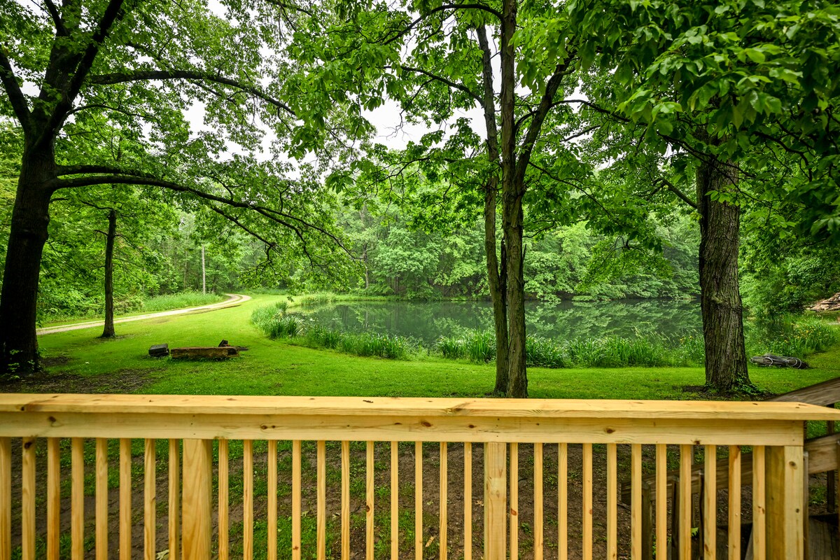 A beautiful log cabin located in Berlin Ohio, the heart of Amish Country. Nestled beside an 8-acre pond with an open dock and adirondack chairs. The outdoors offers other relaxing options like soaking in the hot tub, putting on the putting green, sitting under the pergola with the gas fire pit, swinging on the front porch, or grilling on the patio. Or you can head indoors and relax on the massage chair, play a game, or watch something on one of the 4 TV's, or simply take a nap.