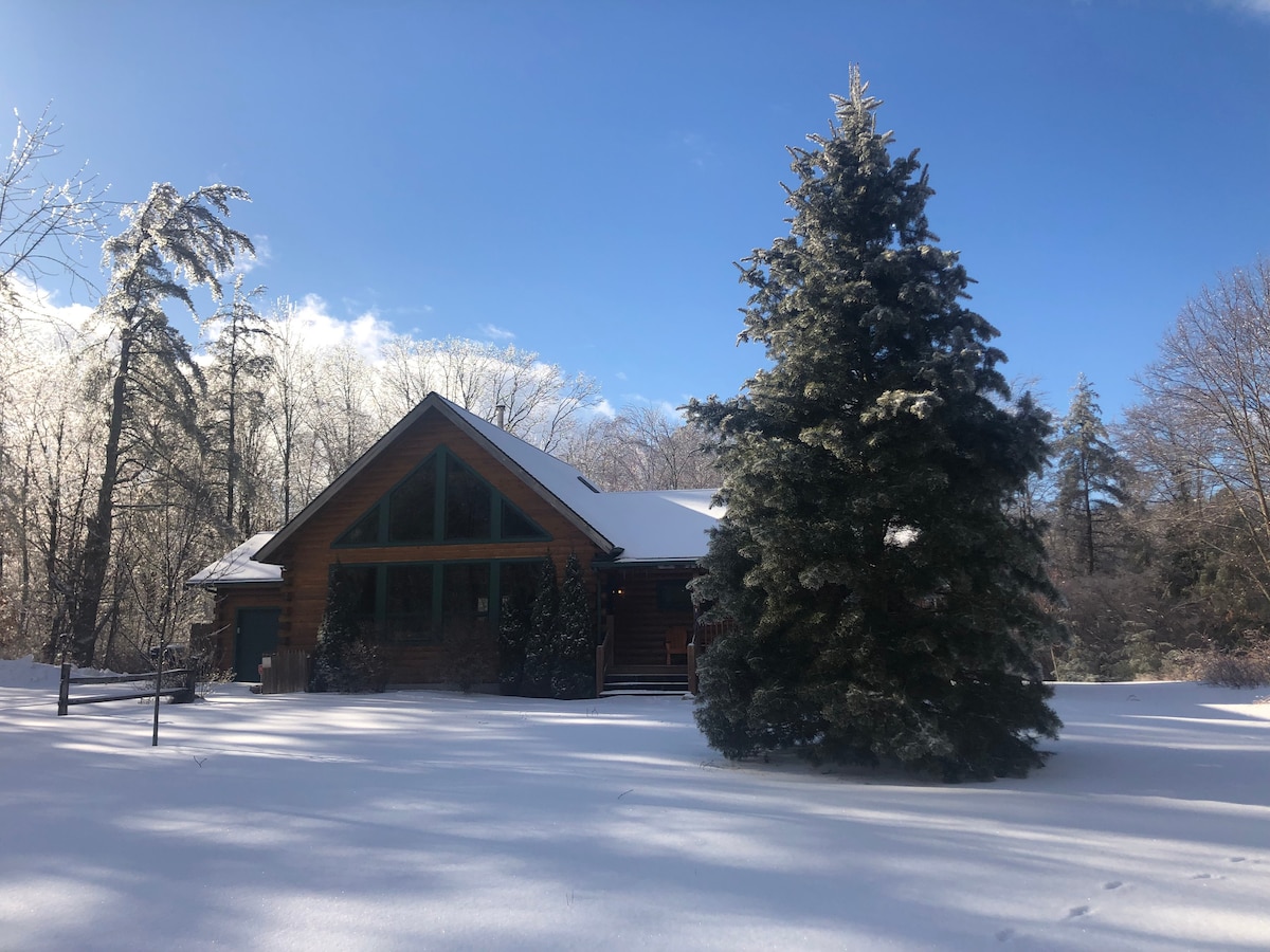 Մեր արտասովոր մեկ հարկանի տնից կարելի է տեսնել մի շարք տեսարան ՝ աշնանը տերևների վառ փոփոխվող գույներից մինչև ձմռանը ձյան փափուկ կույտեր ։ Զգացեք մոտակա անտառների հանգիստը և տեսեք ռոումինգով զբաղվող կենդանիներին, օրինակ ՝ եղջերուներին կամ հնդկահավը ։ Անպայման կանգ առեք մոտակա լճերից մեկում, որոնցից յուրաքանչյուրն առաջարկում է մի շարք հարմարություններ և փարթամ տեսարան ։ Ձմռանը ջերմություն պահպանեք բուխարու կողքին գտնվող հարմարավետ հյուրասենյակում ՝ միաժամանակ զրուցելով ձեր ընկերների և ընտանիքի հետ ։