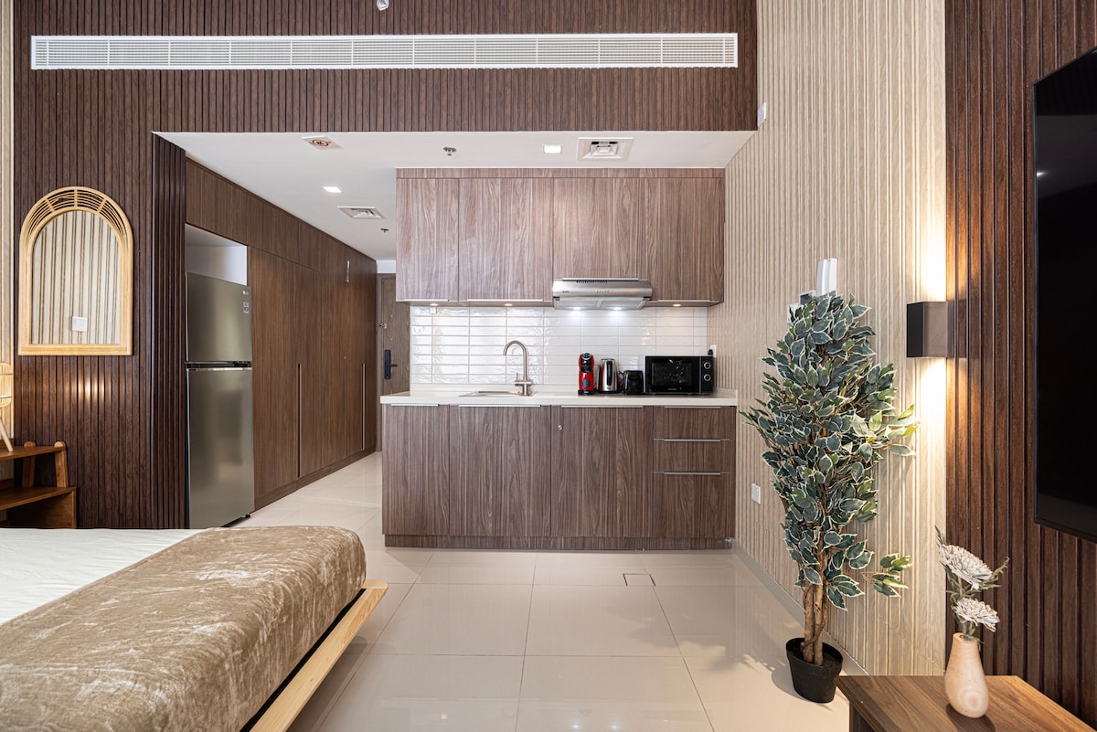 Փորձառություն ունեցեք Oak Luxury-ում՝ մեկ ննջասենյակով նրբաճաշակ հանգստավայրում, որը գտնվում է Շարժայի ժամանակակից Մուվայլեհ թաղամասում։ Այս էլեգանտ տարածքը ունի առանձին մուտք, սմարթ կողպեքով մուտք և լիովին կահավորված խոհանոց։ Վայելեք պրեմիում հարմարություններ, այդ թվում՝ գերարագ Wi-Fi, փայլուն լողավազան, արևայրուք ընդունելու համար նախատեսված շեզլոնգներ և բացօթյա խաղահրապարակ։ Անվճար կայանատեղիով և նորաոճ, ժամանակակից ինտերիերով՝ այն կատարյալ հանգստավայր է գործնական ուղևորությունների կամ հանգստի համար։ Բացահայտեք բարձրակարգ հարմարավետություն քաղաքի սրտում։