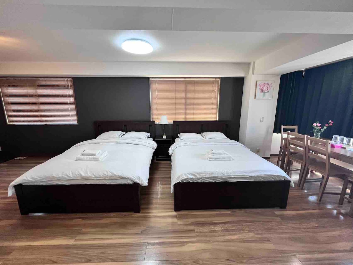 Ընտանիքում բնակության ներկայացում և առանձնահատկություններ Վերջերս կահավորված, գտնվում է Օսակայի սրտում, հարմարավետ տրանսպորտային կապեր, շրջապատված է շքեղ և խաղաղ ճապոնական տաճարներով, ունի ընդարձակ տատամիով տարածք և հրդեհից պաշտպանության ամբողջական սարքավորումներ։ 1. Մետրոյով 3 րոպեում կհասնեք հայտնի տեսարժան վայր Դոտոնբորի, 2 կանգառ անցնելուց հետո կտեսնեք Krispy Kreme-ի ցուցանակը, և կարող եք հասնել ամբողջ փողոցին, որը Շինձի կամուրջն է։ 2. Մոտ 12 րոպե քայլելու ճանապարհ է մինչև Հեյմեն շուկան, որտեղ հարմար է դեղորայք, կոսմետիկա, այլ ապրանքներ և սնունդ գնել։ 3. Թեև գտնվում է Օսակայի կենտրոնում, այն շրջապատված է տաճարներով, որոնք խլում են քաղաքի աղմուկը, և թվում է, թե մտնում ես քաղաքի մի գաղտնի վայր 4. Ամբողջ ինտերիերը նոր կահավորված է, 2 սենյակը և 1 հյուրասենյակը միաժամանակ վարձակալվում են հյուրերի մեկ խմբի՝ մասնավոր տարածքից լիովին օգտվելու համար, ինչը կատարյալ է ընտանեկան ճանապարհորդությունների և ընկերների հավաքույթների համար։ - Նվազագույնը 3 անձ, առավելագույնը 7 անձ - Wi-Fi ներսում Առանձնահատկություններ ՝ 1. Ոտքով մոտ 2 րոպե քայլեք դեպի Օսակայի հայտնի սրբավայրը ՝ «Սենգոկու սոուլ սրբավայր» 2. Մոտ 12 րոպե քայլելու ճանապարհ է Օսակայի «Կուրոմոն» զբոսաշրջային վայրերից 3. Դեպի հայտնի տեսարժան վայր՝ Դոտոնբորիի «Գլիկո» ցուցանակը / 2 կանգառ Sennichimae գծով, իջեք Նամբայում 15:00-ից 19:00-ն ընկած ժամանակահատվածում։ B ելքը գտնվում է 4 րոպե քայլելու հեռավորության վրա, ամբողջ փողոցը հայտնի Սինժի կամուրջն է 4. Աբենո Հարուկասի ուղղությամբ / Վերցրեք Տանիմաչի գիծը, անցեք 1 կանգառ և իջեք Տեննոջիում 5. B&B-ից մոտ 14 րոպե քայլելու հեռավորության վրա է գտնվում Ուեհոնմաչիի հայտնի սննդի և գնումների փողոցը (B1-ից B3 հատվածում կան տարբեր երկրների ռեստորաններ, մերսման սրահներ, հագուստի խանութներ և այլն) 6. B&B-ից մոտ 15 րոպե քայլելու հեռավորության վրա է Uehonmachi Kintetsu հանրախանութը (կոսմետիկա, սպորտային կենտրոն, սնունդ, ռեստորաններ, ամեն ինչ)