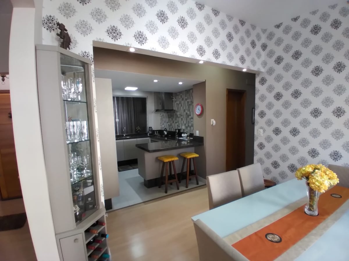 Հանգստացեք լիովին կահավորված այս բնակարանում, որը հարմարավետ է մինչև 06 հոգու համար ։ Շրջակա միջավայրը մաքուր է, լավ ձևավորված, կահավորված խոհանոց, Wi - Fi, հեռուստացույցներ, օդորակիչ, ջեռուցվող հպակներ և գազի ցնցուղ ։ Իդեալական է նրանց համար, ովքեր ճանապարհորդում են աշխատանքի, տեսարժան վայրեր այցելելու, սովորելու կամ քաղաք բուժվելու համար գալիս են, քանի որ հիմնական վայրը հանգիստ և անվտանգ փողոցում ՝ PUC - ի, Unicuritiba - ի, Fae - ի, TRE - ի, հիվանդանոցների, ինչպիսիք են Սանտա Կասան և Պեկենո Պրինիպիեն: Մի քանի բարերի, առևտրի կենտրոնների, սուպերմարկետների մոտ լինելուց բացի ։