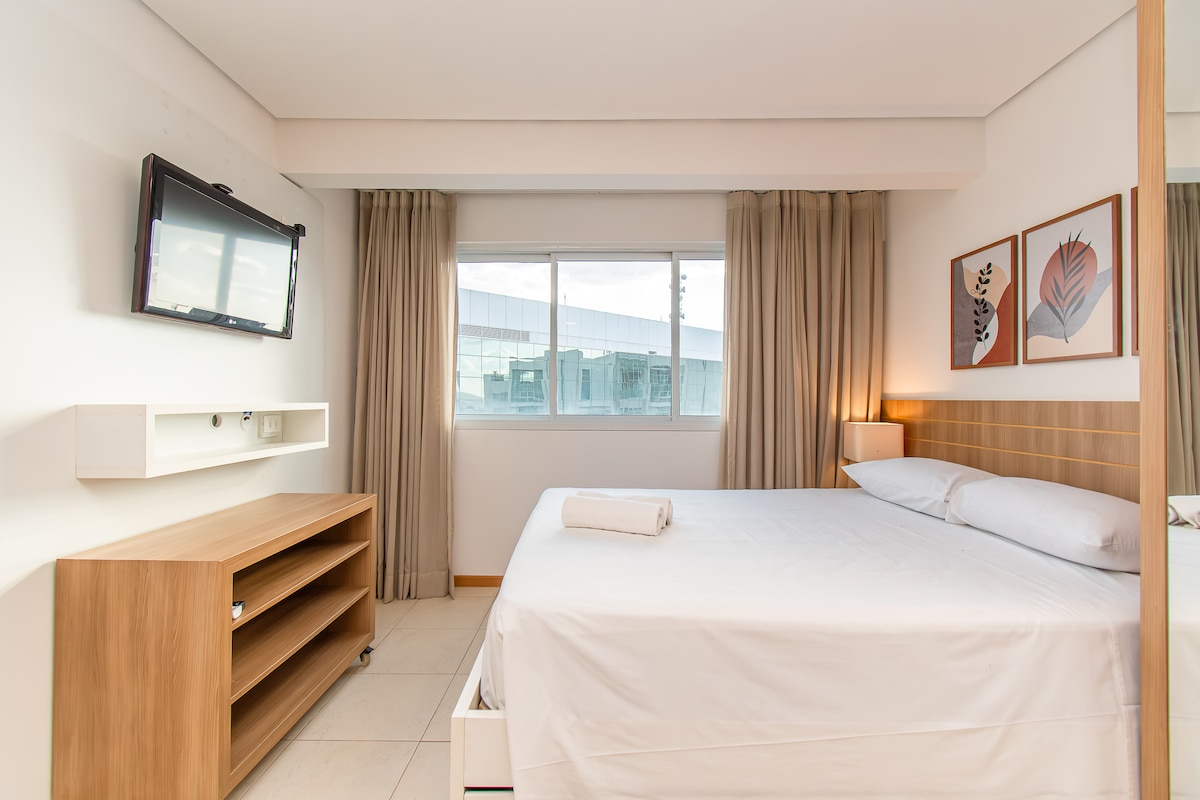 Ժամանակակից, նոր վերանորոգված և լավ ձևավորված բնակարան, որը գտնվում է մայրաքաղաքի մշակութային և տնտեսական սրտում՝ Ասա Նորտեում (SCLN 208)։ Այս բնակարանը, որը հագեցած է ամենաժամանակակից և նրբագեղ իրերով, իդեալական է նրանց համար, ովքեր Բրազիլիայում փնտրում են հարմարավետ և հարմարավետ մնալու տեղ։ Ֆեդերալ մայրաքաղաքում զգացեք ձեզ ինչպես տանը։ - Առանձնաշնորհված գտնվելու վայր. մոտ է ռեստորաններին, շուկաներին, դեղատներին և քաղաքի կենտրոնից ընդամենը 5 րոպե հեռու։ - Ուլտրա արագ wifi։ - Օդորակում ։ - Շուրջօրյա դռնապան ։