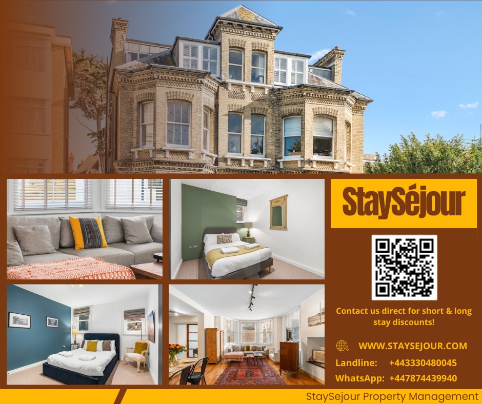 Bright, stylish 1-bed apartment with a spacious garden, ideal for sunny BBQs. Just 2 mins from the beach and 5 mins from Brighton’s center. Enjoy restaurants, bars, cafes, shops, and the beach right at your doorstep. Newly refurbished, the flat features a BBQ, a fully equipped kitchen, a dining/working table, and a cozy outside sofa, as well as an inside TV area with a smart TV and major streaming services. The bedroom has a king size bed and a large cupboard with hanging space.