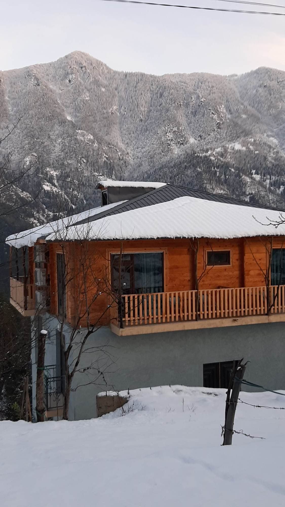 Հարմարավետ փայտե քոթեջ վրացական Վիլիջի փայտե քոթեջում