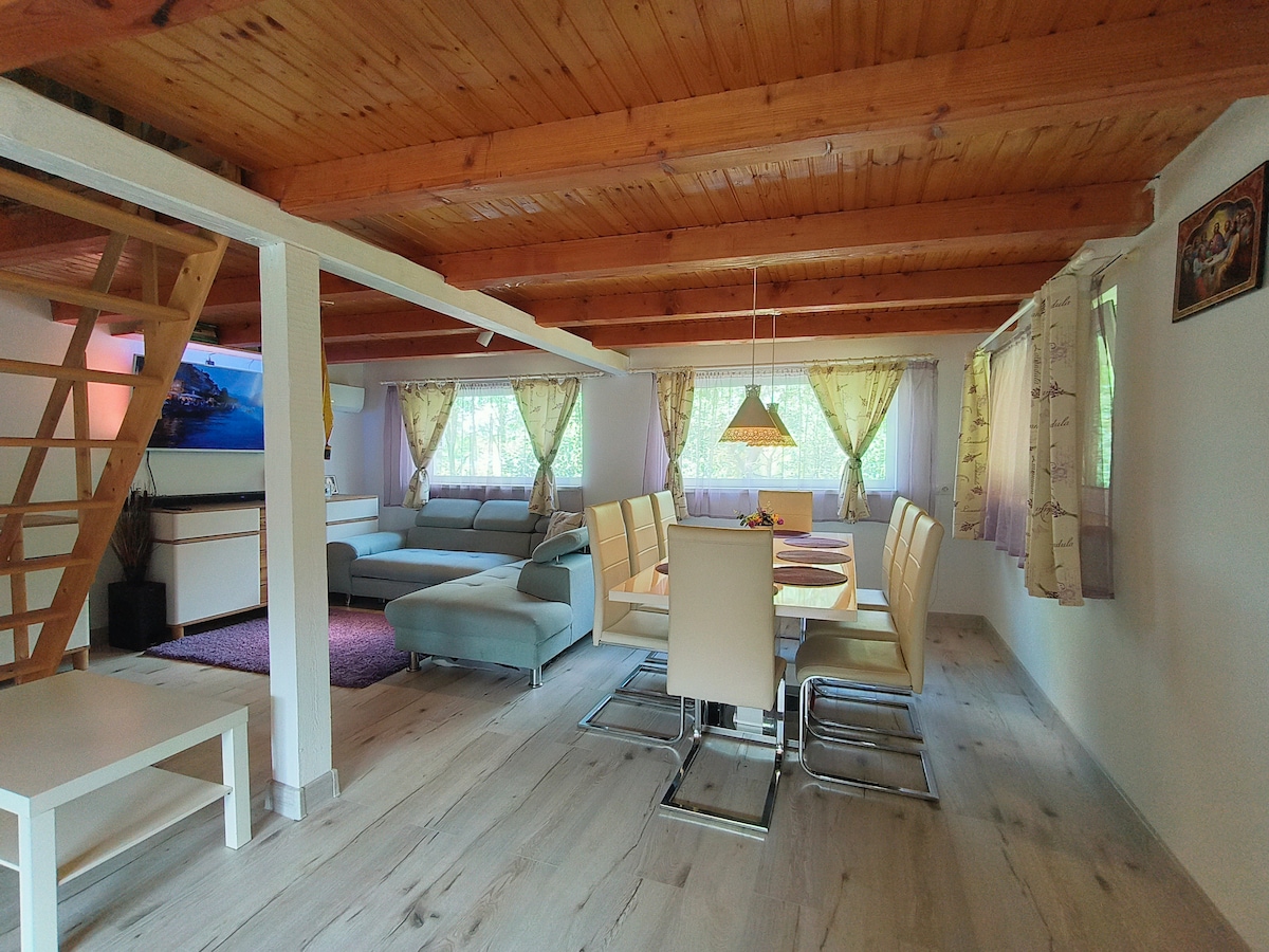 Գեղեցիկ, ռոմանտիկ և էլեգանտ տուն 5 ննջասենյակով, 3 լոգասենյակով, խոհանոցով, հյուրասենյակով, արևոտ տեռասով և մեծ այգով կենտրոնական տարածքում (քաղաքի կենտրոնից ընդամենը 15 րոպե քայլելու հեռավորության վրա)։ 3 ննջասենյակ և 2 լոգասենյակ գտնվում են առաջին հարկում, իսկ ևս 2 ննջասենյակ և 1 լոգասենյակ՝ ձեղնահարկում։ Կատարյալ է ընտանիքի կամ խմբերի համար, կարող է տեղավորել մինչև 14 անձ։ Մեր սեփականության տարածքում կան 2–3 կայանատեղի։ Զգացեք հմայքը, հարմարավետությունը և հարմարությունը այս ցնցող տանը։