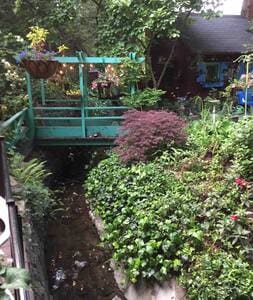 Two room in-law suite with private entry, private bath and kitchenette. Deck entry overlooking Temescal Creek and towering 100 year old coastal Redwoods. Shared garden across the bridge. Walk to Lake Temescal and Montclair Village. Easy, quick access to Hwys 13 and 24. Short drive to UC Berkeley, Mills College and California College of the Arts, the Berkeley Gourmet Ghetto, and Oaklands many fine restaurants. Some small dogs accepted, no large dogs, and no cats due to allergies.