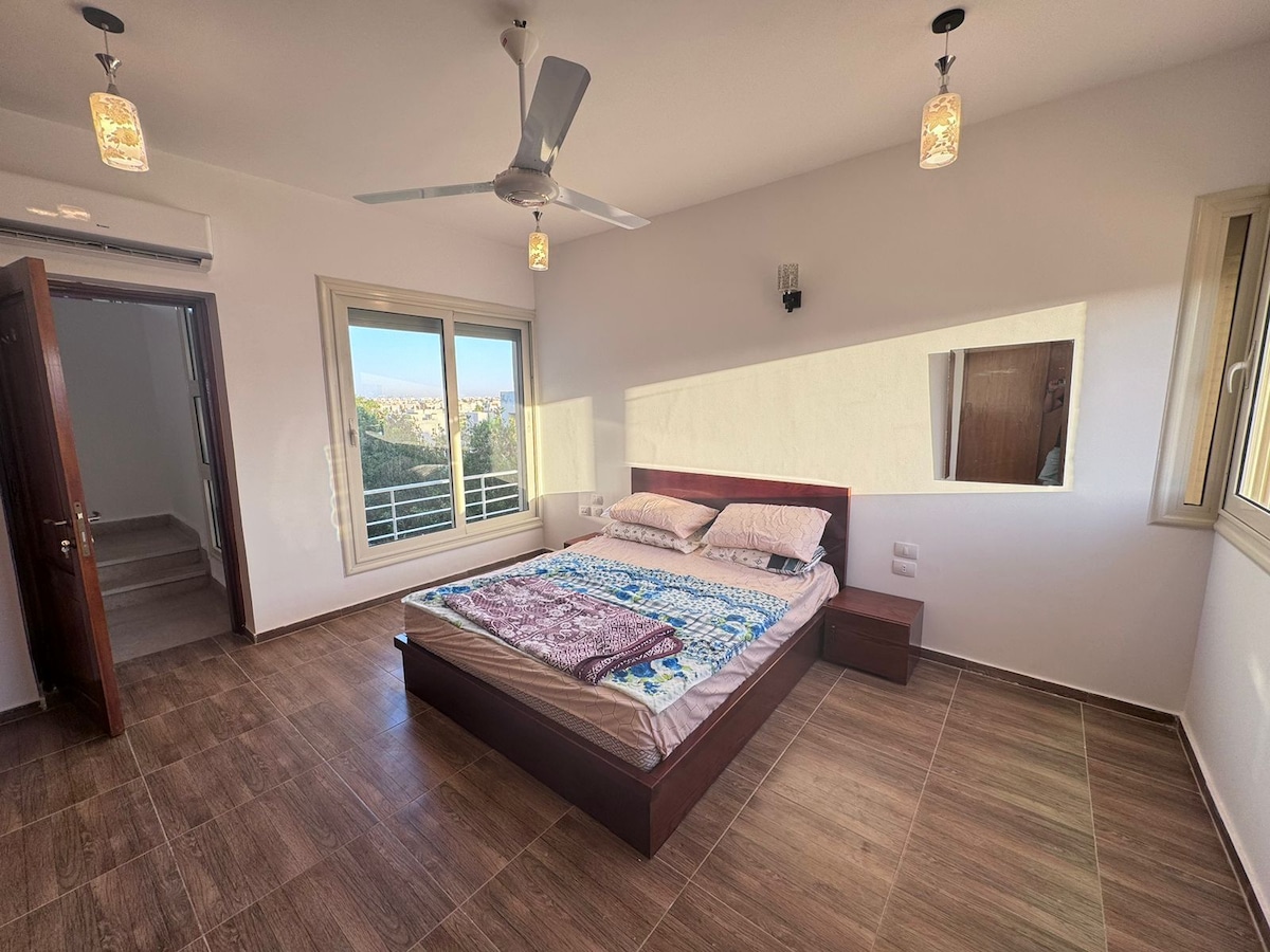 A beauty and comfort apartment with a privet garden in Amwaj North Cost there are two conditions bed rooms every bed room have 2 beds and wardrobe and you can find your full setup kitchen and 1 bedroom,large privet garden all of this near of the lake 3 and munits to the pool and the beach you will feel realx and comfortable 😃