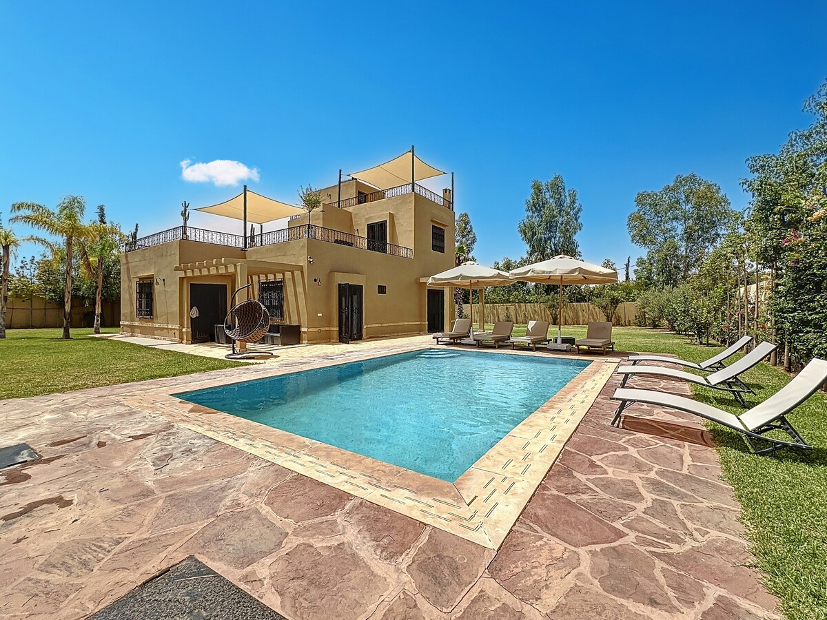 Հմայիչ վիլլա՝ մասնավոր լողավազանով, առանց հարևանների տեսարանի, Մարաքեշի կենտրոնից մի քանի րոպե հեռավորության վրա։ 🌴 2 ննջասենյակ լոգասենյակով, 1 ընդհանուր լոգասենյակ, 1 լուսավոր հյուրասենյակ և խաղաղաղ, ընդարձակ պարտեզ 💎 Լիովին օդորակված, իդեալական զույգերի, ընկերների կամ ընտանիքների համար, հանգիստ և սիրված թաղամասում 🍽️ Ծառայություններ. մարոկկայական խոհանոց տանը, մեքենաների վարձույթ և փորձառություն Մարաքեշում։ 24/24 անվտանգ 🏘️ բնակարան 📈 Բացառիկ զեղչեր. -20% ամիսը, -7% շաբաթը, -3% վերջին պահին