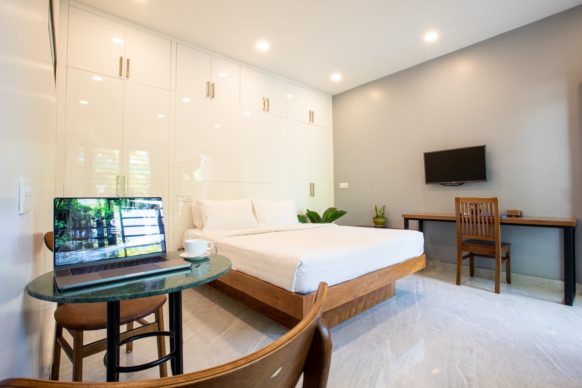 Տեղավորված է փարթամ արևադարձային այգիներով և տեղական հնագիտական արտասովոր զբոսայգով պարուրված գլխավոր վայրում ՝ ապահովելով հանգիստ հանգիստ քաղաքային կակղամորից: Մեր տարածքին կից գտնվում է աշխույժ տեղական շուկան, որն առաջարկում է եռանդով և ակտիվությամբ հագեցած քմերական փորձառություն ։ Հիացեք ձեր զգայարանները իսկական ուղեվարձով և արհեստագործական արհեստներով ՝ ընկղմվելով տեղական մշակույթի հարուստ գոբելենի մեջ: Մենք պարծենում ենք համաշխարհային ինտերնետ կապով և հեռավար աշխատանքի գերժամանակակից հարմարություններով ։