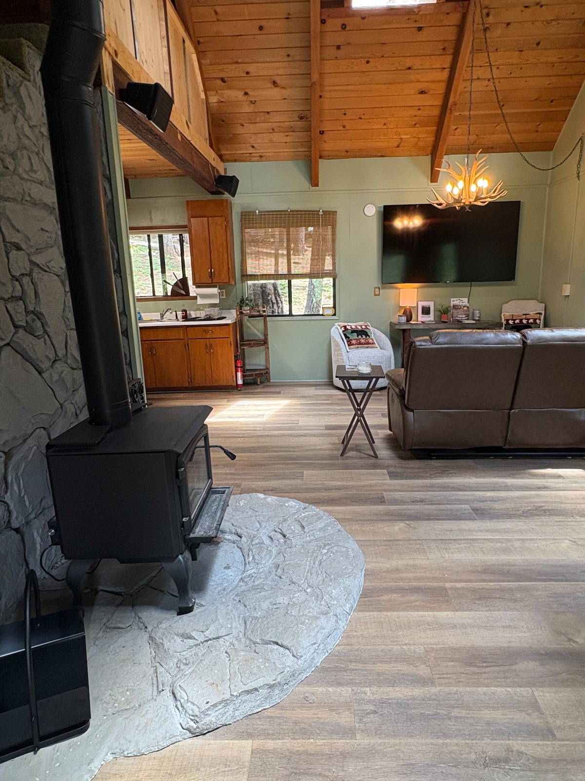 Relax and recharge at this cozy cabin getaway. Tucked away in a peaceful setting, this charming cabin offers the perfect spot to unwind. Thoughtfully decorated with warm touches, it has everything you need for a comfortable and restful stay. The cabin features one bedroom plus a loft upstairs, creating a welcoming space. Step outside to a spacious deck—ideal for relaxing, grilling, or stargazing —and take advantage of the small yard for a little outdoor fun or quiet relaxation.