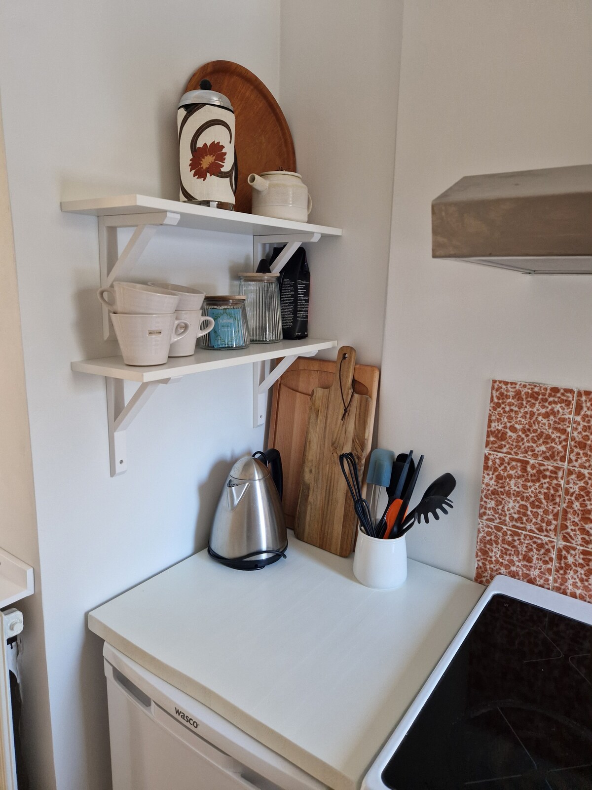 The annex is located in our garden and has room for 2 people. There is the possibility of a bed for a child on the sofa. The bed is 160 cms wide. In the kitchen there is a Nespresso coffee machine and an air fryer for preparing small meals. When the weather is good, morning coffee can be enjoyed on the terrace. There are cold drinks in the fridge that you can buy. Main room with bath and entrance is approximately 30 square meters - terrace approximately 7 square meters. NB. min stay is 2 nights