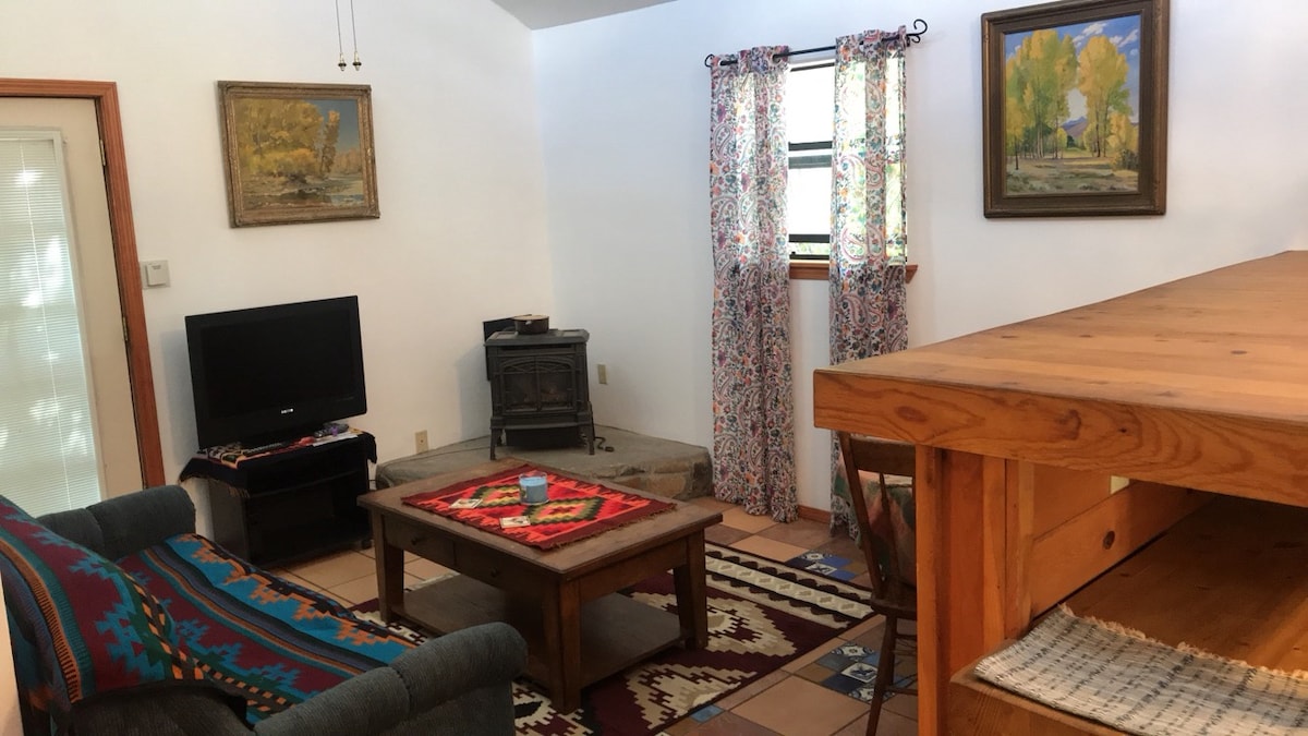 Take it easy at this unique and tranquil getaway. We are within walking distance of the Dragonfly Trailhead in the Gila National Forest. A great get away for hiking and biking. Just minutes away from the charming town of Silver City, NM. One bedroom has a queen size bed, and there is also a full size hide-a-bed in the living room.