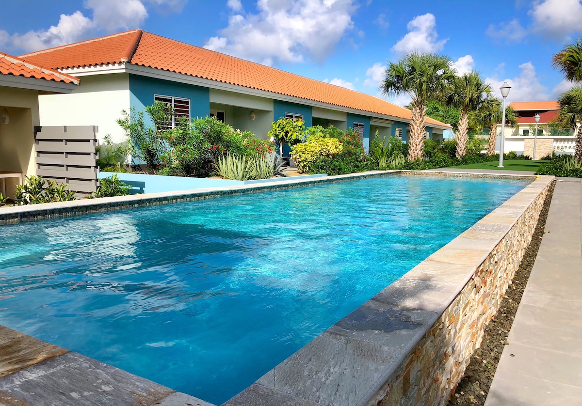 Մոռացեք ձեր «բլյուզը» Blue Bay - ում: Blue Bay - ում, Triple Tree Resort - ում, մեր բնակարանը վարձով է տրվում: Բլյու Բեյը Վիլլեմստադին մոտ գտնվող ընդարձակ, կանաչ և ապահով հանգստավայր է ։ Մեր բնակարանի պատշգամբից բացվում է դեպի ծով տանող արևադարձային բնապատկերը ։ Մեծ լողավազանը ձեր շեմին է: Սպիտակ լողափը և ազուրային ծովը գտնվում են քայլելու հեռավորության վրա ։ Կամ մնացեք բնակարանում և վայելեք պատշգամբից օդը և օդորակիչը ։