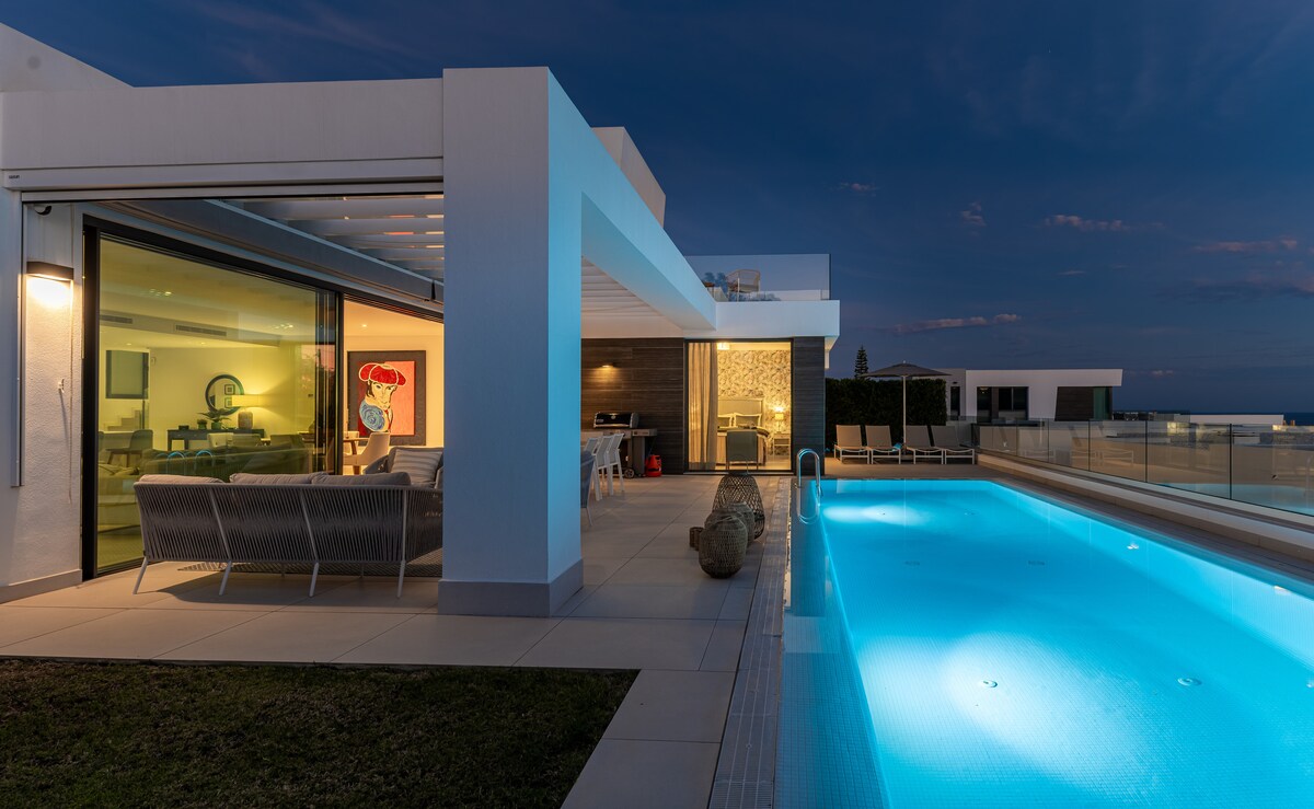 Villa Carla – Heated Pool & Sea Views in Cabopino, Marbella Discover Villa Carla, a stylish 4-bedroom villa just 700m from the beach. Enjoy a heated private pool, panoramic sea views, designer interiors, open-plan living, south-facing terraces with BBQ, underfloor heating, A/C, and fast WiFi. Located in a secure gated community near Marbella and Fuengirola, with top golf courses nearby. Ideal for families, remote workers, or luxury getaways on the Costa del Sol.