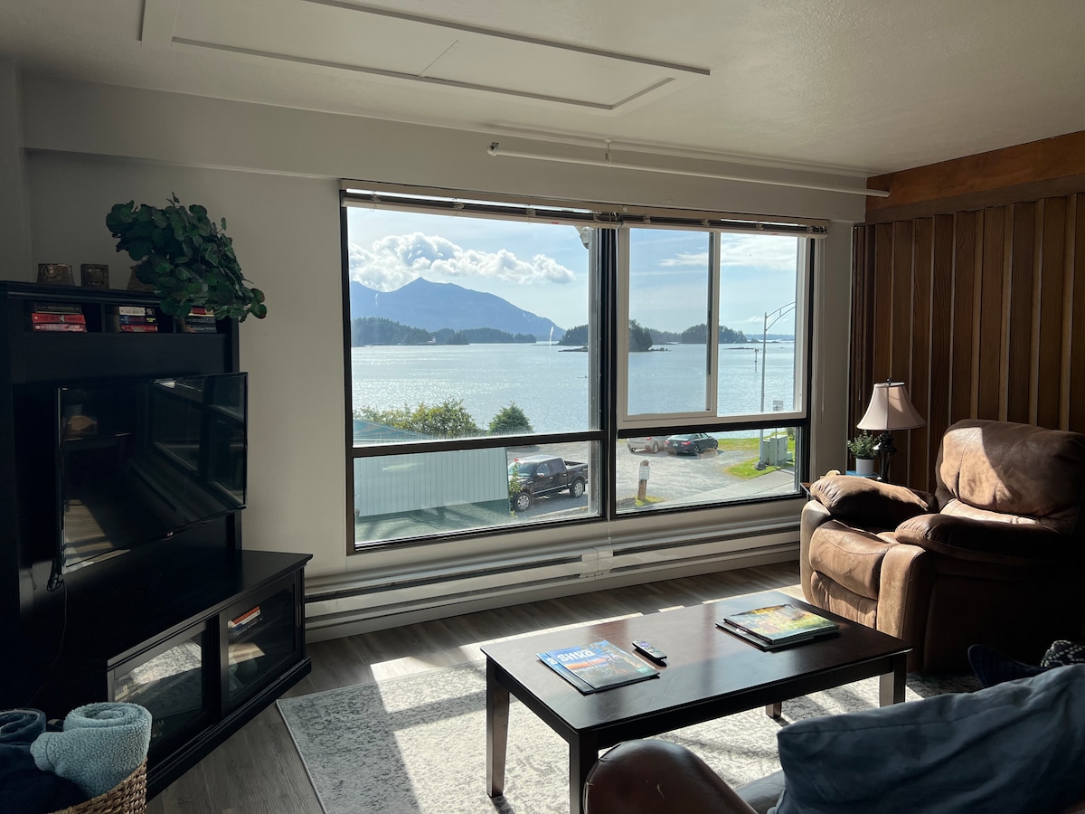 Հարմարավետ բնակարան, որը գտնվում է Սիտկայի կենտրոնում ՝ երեք հարկանի տան վերևում ։ Այն ունի երկու ննջասենյակ ՝ յուրաքանչյուրը երկտեղանի մահճակալով և երկու հարմարավետ կաշվե բազմոցներով (լովեզատ և ամբողջական չափսի )։ Խոհանոցը կես խոհանոց է, ուստի գազօջախ չկա, բայց այն հագեցած է միկրոալիքային վառարանով, տաք ափսեով, սուրճի կաթսայով և թեյնիկով ։ Մեր հատակը հաջորդ հարկն է ներքև և առանձնացված չէ դռնով, բայց դուք ունեք ընդհանուր գաղտնիություն ։ Մենք ունենք երկու շուն և հավերով լի բակ, բայց ոչ մի կենդանի չի մտնում վարձույթի մեջ ։