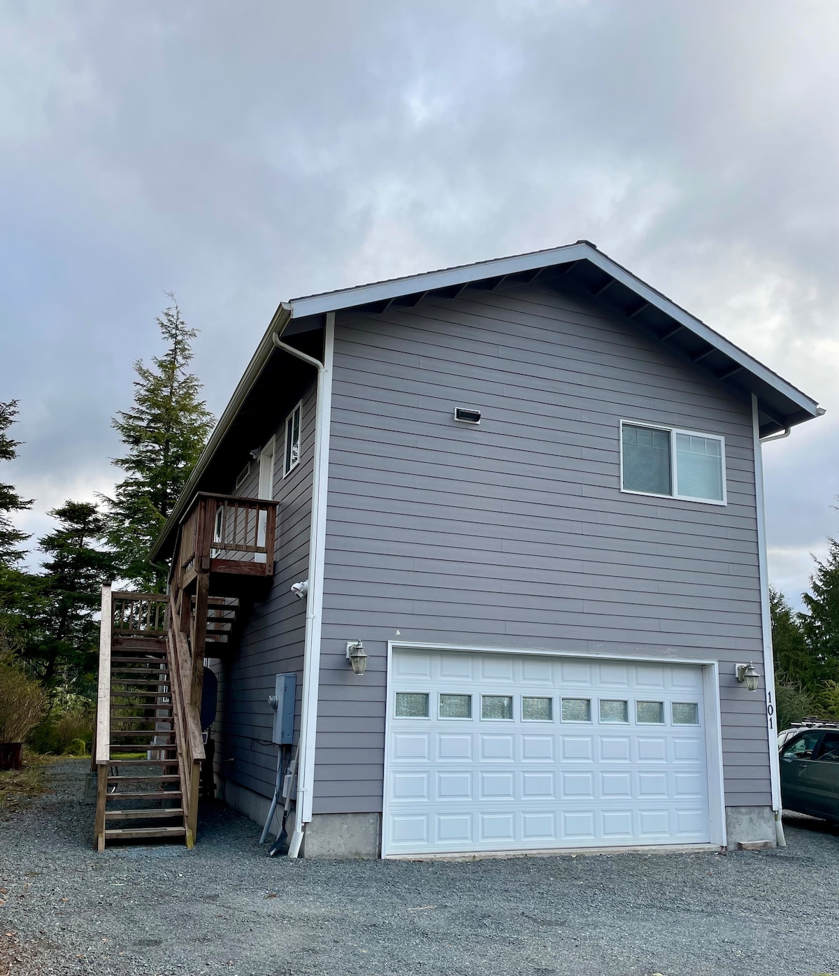 Amazing third floor views of the Pacific Ocean. Located 3.5 miles from downtown. The 111 Studio is perfect for your Sitka, Alaska stay. Pets not allowed at this time. Host is not responsible for snow removal in driveway or stairs, if such weather presents. The 3rd floor space does NOT have a full kitchen. It does have a mini fridge, microwave, toaster oven, electric tea kettle and coffee pot. The space is private, accessed by an outside staircase in left side of house.