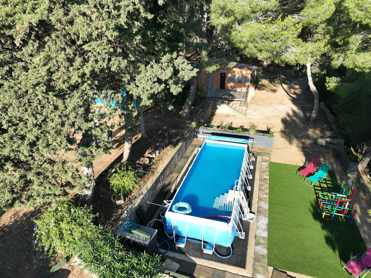 Բարի գալուստ! մեր փոքրիկ անկյունում դրախտ միջեւ հողի եւ ծովի. Մեր փոքրիկ կոկոնը իդեալական վայր կլինի ձեր հանգստյան օրերի կամ Ֆրանսիայի հարավ - արևելքում գտնվող Domaine de Fabregas à la Seyne sur Mer - ում: Դուք կունենաք բնակարան 4 հոգու համար ՝ առանձին լողավազանով, մանղալով և պիցցայի վառարանով, որը գտնվում է անտառի կողքին: Մեր փոքրիկ տունը գտնվում է ծովից 500 մ հեռավորության վրա և լողափերից (քարափ/ ավազ ): Մենք ձեզ կտրամադրենք այն ամենը, ինչ անհրաժեշտ է ձեզ ինչպես տանը զգալու համար: