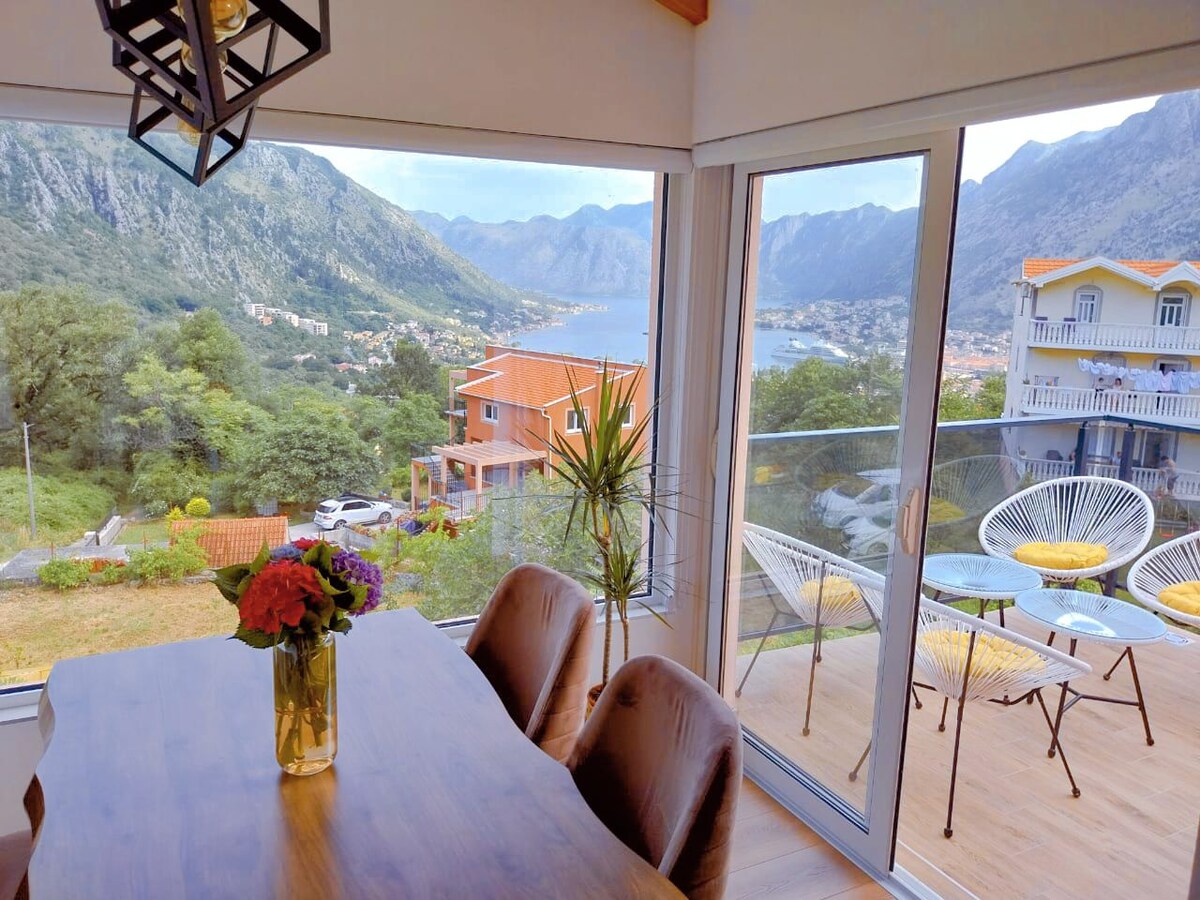 Միջին վարկանիշը՝ 5-ից 4,95, 190 կարծիքԺամանակակից բնակարան գեղատեսիլ Կոտոր ծովածոցի տեսարանով