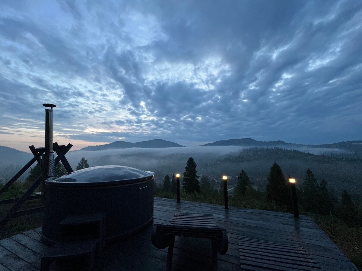 Minicottage with panoramic mountain mountain view in Slavsko. A quiet and aesthetic place on the slope mount Pohar. Inside everything is designed for a comfortable stay for up to 3 guests. Impressive view from the windows. Panoramic terrace. Window above the bed for stargazing. Fireplace. Starlink internet. Well equipped kitchen. A library. Transfer to the cottage. Barbecue area. Pets welcome.