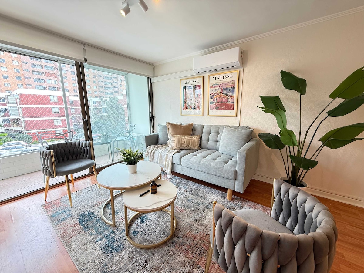 Մենք տան ճանապարհորդներ ենք: Բարի գալուստ մեր տուն ։ ✨ Վայելեք մեր բացառիկ գործադիր վարչությունը ՝ քայլեր հեռու Parque Arauco Shopping Center - ից և Casa Costanera - ից, Vitacura - ի գաստրոնոմիայից և նրա բնակելի թաղամասից: Այն ունի մեկ ննջասենյակ, երկու լոգասենյակ, ինտեգրված հյուրասենյակ, առանձին տեռաս և կայանատեղի շենքում ։ Այն ամենը, ինչ անհրաժեշտ է ձեր հարմարավետության և հանգստի համար: Ձեր ուղևորությունը դարձրեք անմոռանալի փորձառություն մեր տարածքում: Ամրագրեք հիմա և վայելեք շքեղությունը ձեր ձեռքի տակ: