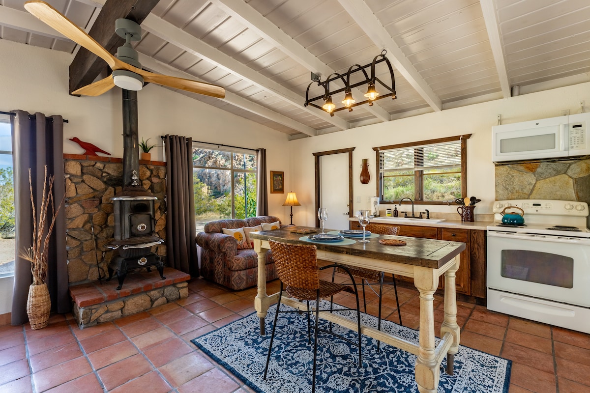 Նախքան այս տունը ձեռք բերելը մենք ինքներս էինք սովորական հյուրեր ընդունում: Մենք հենց այս «Մայրամուտի քոթեջը» դարձրեցինք մեր տունը, քանի որ գտանք, որ այն իդեալական վայր է Ջոշուա Թրի հանգստանալու համար ։ Մեկ գիշեր տևողությամբ այցերը դիտարկվում են շաբաթվա օրերի և վերջին պահի վարձակալության համար ։ Հարցման համար գրեք ։ The Sunset Քոթեջ առաջարկում է լավագույն երկու աշխարհների - Դուք պարզապես տակ 1 մղոն դեպի Joshua Tree Village ռեստորաններ եւ խանութներ եւ 6 մղոն դեպի Park Մուտքը, բայց դուք ունեք 5 մասնավոր ակր բոլորը ինքներդ, որ առաջարկում է համերաշխություն, զարմանալի դիտարկումներ, եւ լավագույն անապատային լանդշաֆտը. Կանոնավոր այցելուները ներառում են լոր, ջեք նապաստակներ, կապույտ ջեյ, ճանապարհային վազորդներ և դաշտամկ: Բացօթյա հարմարությունները ներառում են 5 անձի համար նախատեսված ջակուզի, բացօթյա կահույք, այդ թվում ՝ երկտեղանի լաունջ, պրոպան գրիլ և փայտի այրման խիմինեա ։ Ջոշուա ծառերը շրջապատում են սեփականությունը ։ Ներսում հանգիստ Քոթեջ դուք կարող եք գտնել մի լիովին կահավորված խոհանոց, փայտի այրվող վառարան է բաց ճաշասենյակում/հյուրասենյակ, բազմոց, որը ծալվում է տեղավորել 2, Wi - Fi, հարթ էկրանով հեռուստացույց եւ DVD նվագարկիչ, հիմնական DirecTV ծրագրավորում, եւ ձայնային համակարգ, որը ներառում է iphone որսալ եւ turntable հետ մեծ վինիլային հավաքածու. Մենք նաև մի քանի կիթառ ենք պահում տանը: Ննջասենյակից բացվում են գեղեցիկ տեսարաններ և երկտեղանի մահճակալ ։ Քոթեջն ունի օդորակիչ և ջերմություն ՝ ձեր հանգիստն առավելագույնս հարմարավետ դարձնելու համար, իսկ լվացքի մեքենան և չորանոցը գտնվում են ձեր օգտագործման համար առանձնացված կասիտայում ։ Ջոշուա Թրի տարածք այցելող հյուրերի համար նորաոճ, զեն հանգիստ է ձեռք բերվել Sunset Cottage - ի և սեփականության համար ։ Քոթեջը հիանալի վայր է միայնակների, զույգերի կամ փոքր ընտանիքների համար, որոնք փնտրում են հարմարություններ և հանգիստ հանգստություն ցանցից դուրս, բայց դեռ մոտ են այն ամենին, ինչ առաջարկում են Ջոշուա Թրի գյուղը և ազգային պարկը ։ Ներեցեք, բայց մենք ունենք տնային կենդանիների հետ կապված շատ խիստ քաղաքականություն ։