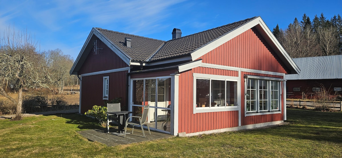 Meet our lovely red cottage in Småland surrounded by forest, hills and lakes. With all the comfort you need for a pleasant stay. Enjoy a cozy evening by the wood stove. The house has a big private garden where you can relax and make a campfire at the fire pit. Go fishing or take a swim in one of the lakes nearby. And maybe you see deer, foxes or moose from our sunny porch. Go skiing at the ski-slope, visit a moose park or go down the zippline. April-October we rent out 2 sit-on-top kayaks.
