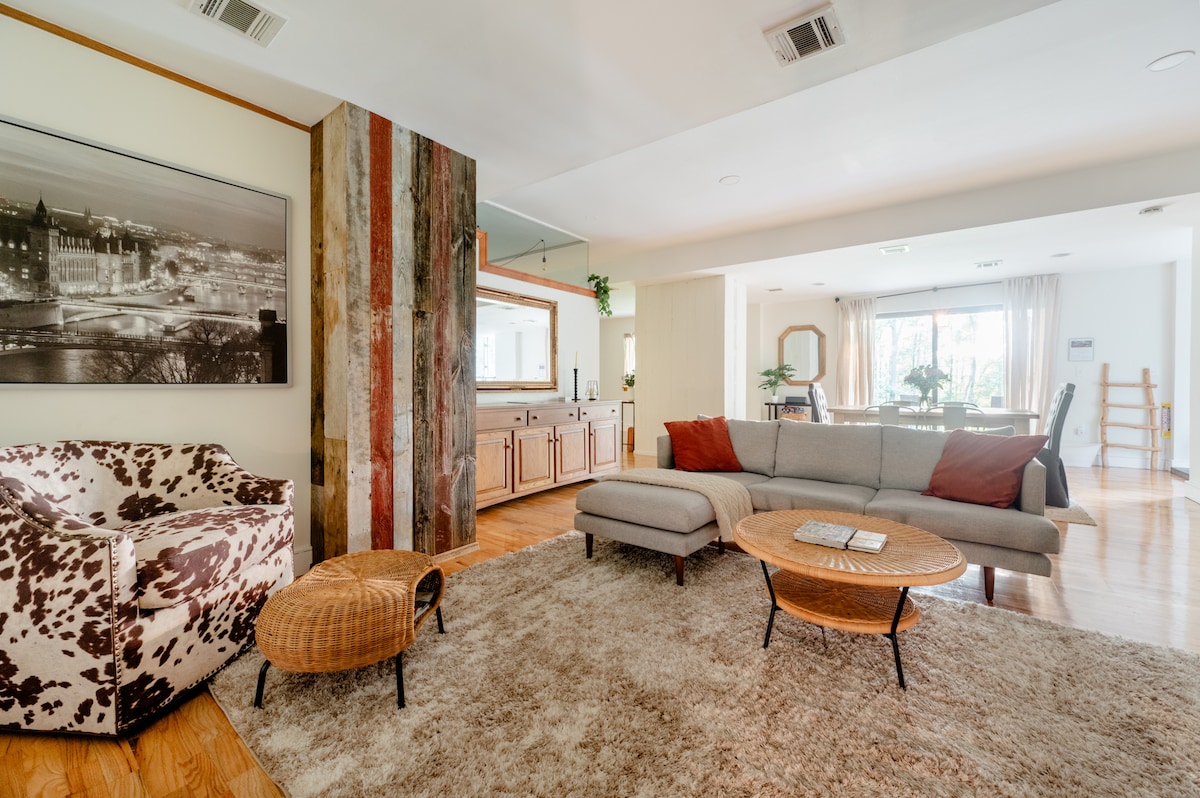Հանգստացեք 557 քմ մակերեսով, զարմանալիորեն վերանորոգված մասնավոր բնակարանում՝ 3-րդ հարկում։ 1883 թվականի վիկտորիանական դղյակ Բլումինգ Գրուվում, Նյու Յորք։ 1–6 հյուրերի համար նախատեսված այս լուսավոր տարածքը հարմարավետություն և դասական հմայք է առաջարկում խաղաղ գյուղական միջավայրում։ Ներառում է շքեղ մահճակալներ, դեկորատիվ ոտքերով լոգարան, ֆրանսիական դռնով ցնցուղարան և խոհանոցիկ՝ արևոտ նախաճաշի անկյունով։ Իդեալական հանգստի վայր։ Վայրի ծաղիկների, խաղաղ գյուղի և հարևանությամբ գտնվող կովերի տեսարաններ։ 3-րդ հարկը երկու աստիճաններով է, պարգևատրվում է հիասքանչ տարածքով և բարձրադիր տեսարաններով։