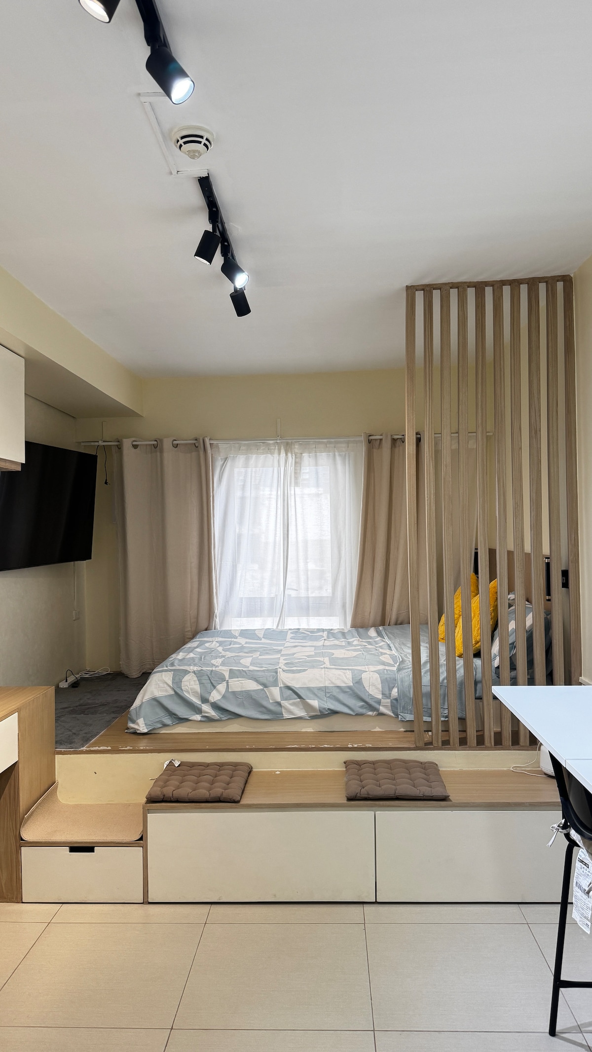 The Good Place @ Studio 7 Timog Quezon City-ն առաջարկում է տնական և հարմարավետ հանգիստ, որը, անկասկած, ձեզ դուր կգա։ Հանգստացեք և լիցքաթափվեք մեր նորաձև կոնդոտելում, որը ձեզ կտա հյուրանոցային հարմարավետության և տան հարմարավետության կատարյալ համադրություն։ Անկախ այն բանից՝ կարճատև հանգիստ եք վայելում, գործնական ուղևորության եք, թե երկարաժամկետ այց եք կատարում, մեր տարածքը լիովին կահավորված է, որպեսզի ձեր այցը լինի անհոգ և հիշարժան։