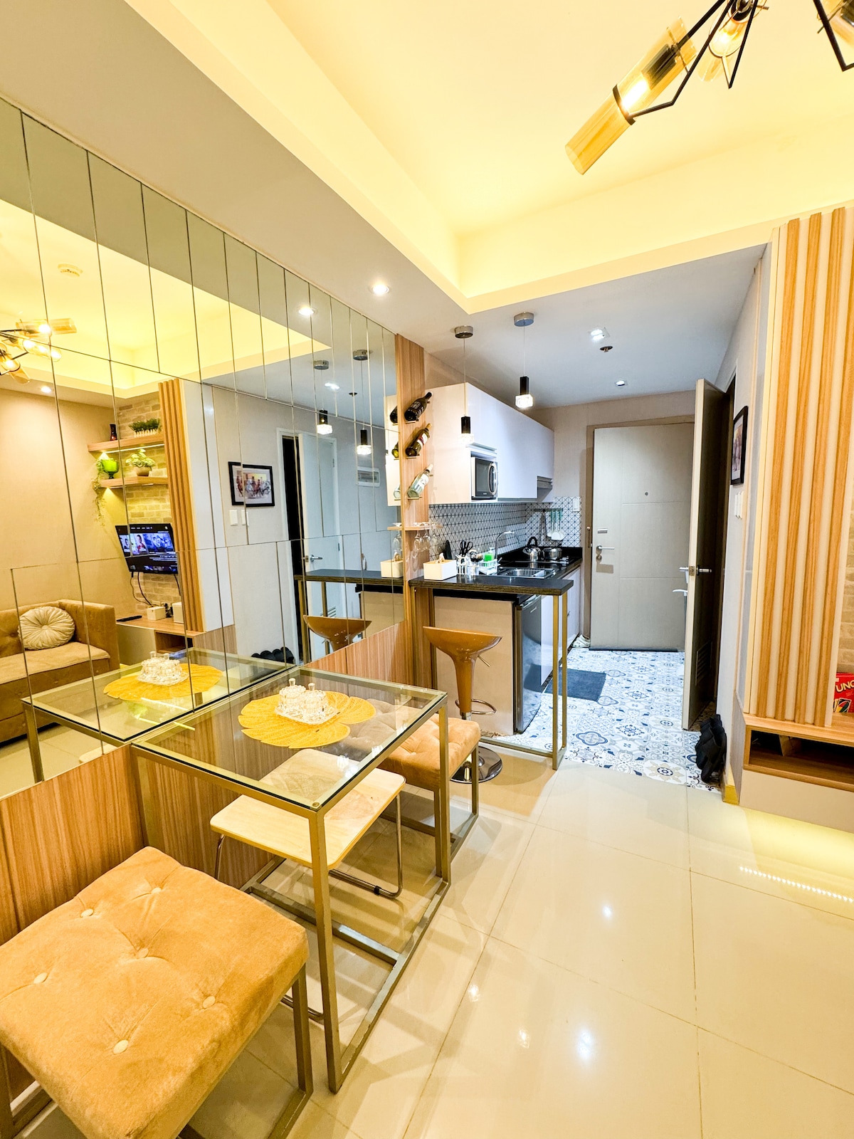 Welcome to Your Suite Escape—nestled right in the vibrant entertainment hub of Tomas Morato, Quezon City! Explore trendy cafés, indulge in local dining, or simply unwind after a long day with cozy movie nights on Disney+ and Netflix right in the comfort of your suite. Enjoy a thoughtfully designed studio with warm interiors, natural light, and hotel-style comforts. If this place is booked on your date, check out our other themed spot at airbnb.com/h/your-suite-escape-the-26th-at-tomas-morato