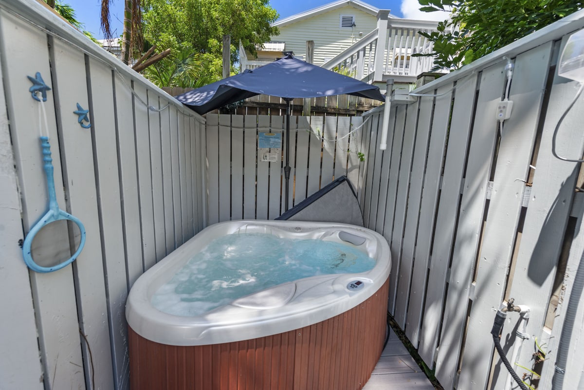 Romantic Retreat is an Historic, free standing cottage which, in the 1800's, was the cistern for the Cigar Maker cottages here. It is decorated in a light Caribbean motif, efficiency kitchen (frig, microwave, hot plate) and a very airy bathroom with tub/shower. King memory foam bed and sleeps 2 persons only. 32” Smart TV (bring your Netflix, Amazon UN/PW's). Bose Bluetooth speaker, Amazon Alexa provided. A private adjacent deck with a 2 person Solana spa/seating. Also handicapped accessible.