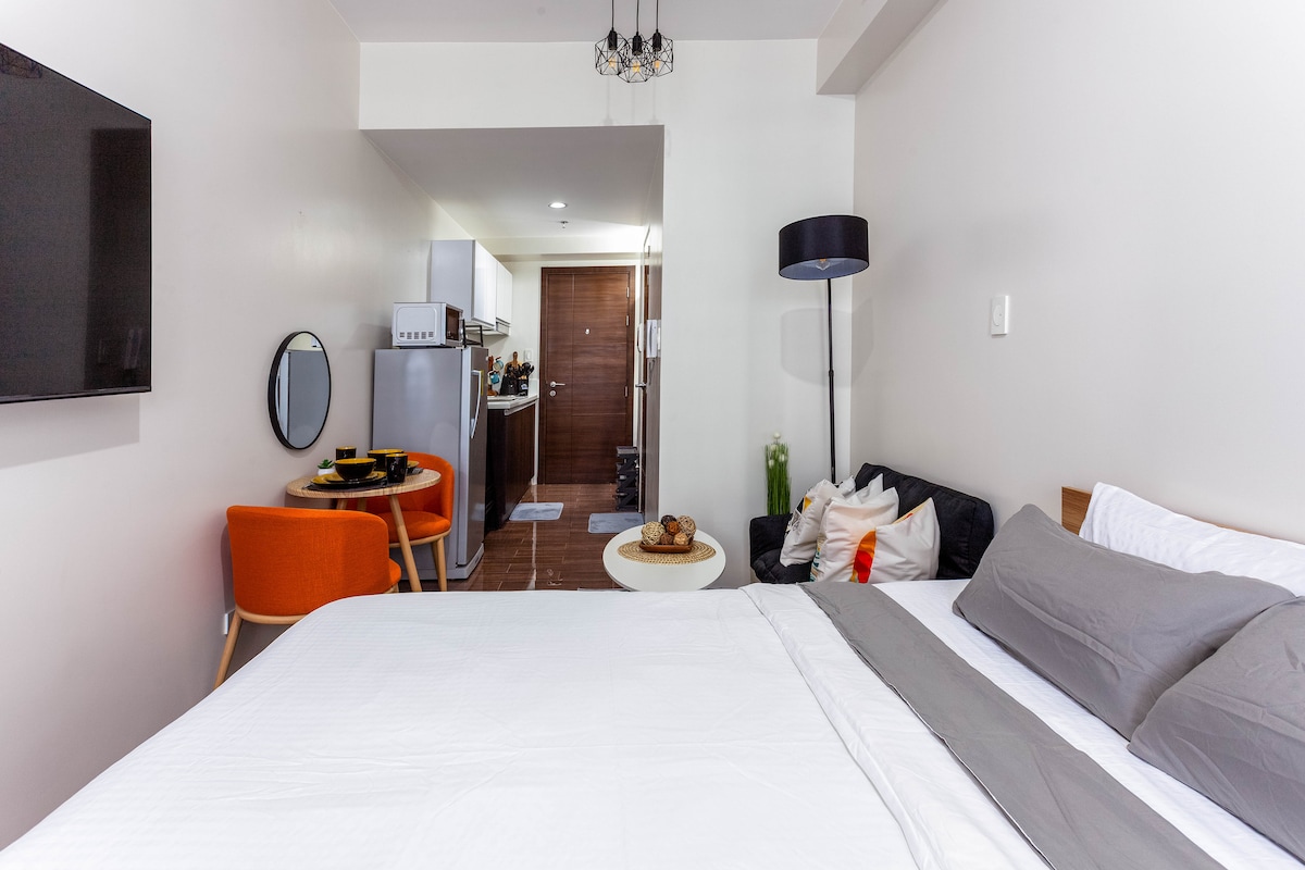 Վայելեք ձեր կարճատև կամ երկար այցը իմ շքեղ 1 ննջասենյակի լոֆթում ՝ պատշգամբով, որը փայփայում է ձեր արձակուրդներին կամ ազատ ժամանակ հարմարավետ մեծ մահճակալում կամ հարմարավետ կաշվե բազմոցին, որը խաղեր է խաղում մեր Nintendo Switch կոնսոլում, դիտեք, օրինակ, Netflix - ի ֆիլմեր 55 դյույմանոց հեռուստացույցով կամ արդյունավետորեն աշխատեք արագ Wi - Fi - ի, տպիչի, սկանավորող համակարգի միջոցով: Զորամասը շքեղ կահավորված և կահավորված է: Հարկաբաժինը գտնվում է Մակատիում գտնվող SMDC ՕԴԱՅԻՆ բնակավայրերում ։